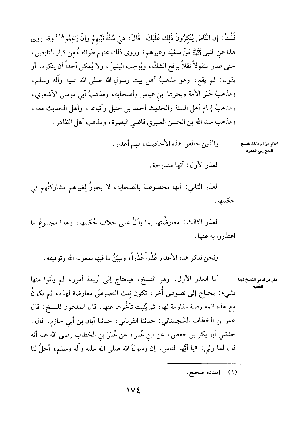 [أَعْذَارُ مَنْ لَمْ يَأْخُذْ بِفَسْخِ الْحَجِّ إِلَى الْعُمْرَةِ]