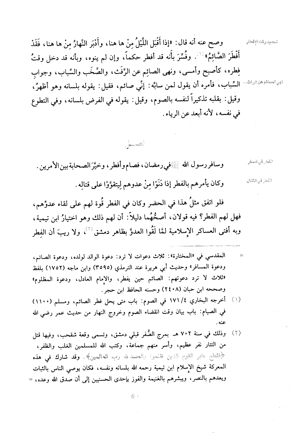 فَلَوِ اتَّفَقَ مِثْلُ هَذَا فِي الْحَضَرِ وَكَانَ فِي الْفِطْرِ قُوَّةً لَهُمْ عَلَى لِقَاءِ عَدُوِّهِمْ فَهَلْ لَهُمُ الْفِطْرُ؟ فِيهِ قَوْلَانِ أَصَحُّهُمَا دَلِيلًا: أَنَّ لَهُمْ ذَلِكَ، وَهُوَ اخْتِيَارُ ابن تيمية، وَبِهِ أَفْتَى الْعَسَاكِرَ الْإِسْلَامِيَّةَ لَمَّا لَقُوا الْعَدُوَّ بِظَاهِرِ دِمَشْقَ، وَلَا رَيْبَ أَنَّ الْفِطْرَ