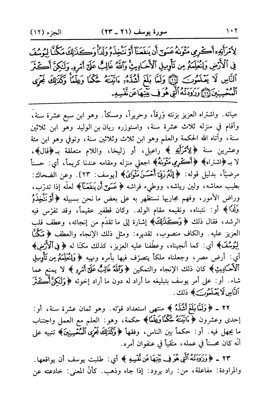 وَرَاوَدَتْهُ الَّتِي هُوَ فِي بَيْتِهَا عَنْ نَفْسِهِ وَغَلَّقَتِ الْأَبْوَابَ وَقَالَتْ هَيْتَ لَكَ قَالَ مَعَاذَ اللَّهِ إِنَّهُ رَبِّي أَحْسَنَ مَثْوَايَ إِنَّهُ لَا يُفْلِحُ الظَّالِمُونَ (23)