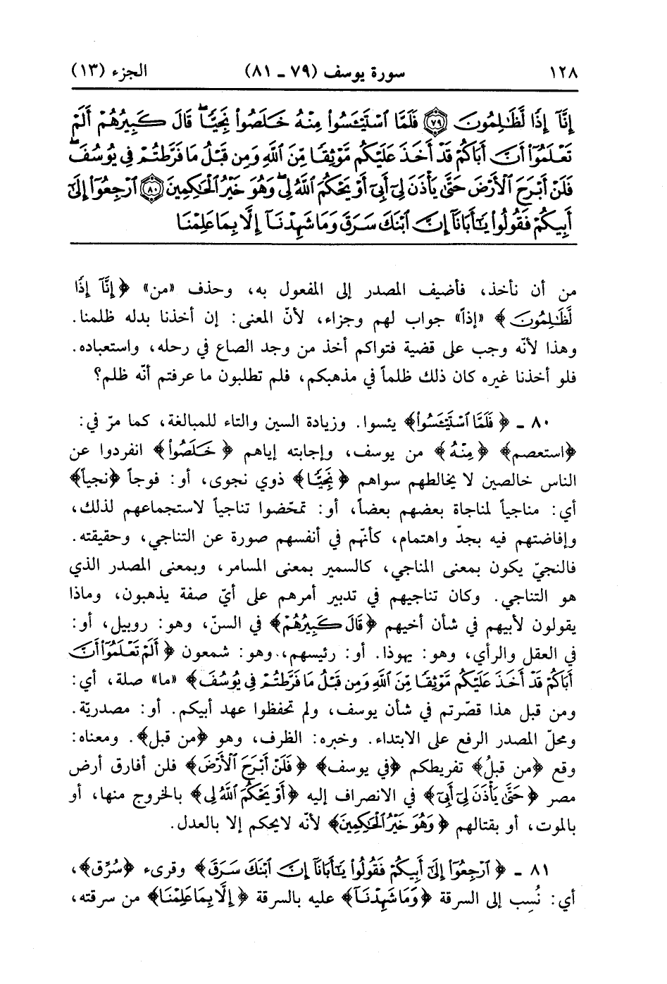 فَلَمَّا اسْتَيْأَسُوا مِنْهُ خَلَصُوا نَجِيًّا قَالَ كَبِيرُهُمْ أَلَمْ تَعْلَمُوا أَنَّ أَبَاكُمْ قَدْ أَخَذَ عَلَيْكُمْ مَوْثِقًا مِنَ اللَّهِ وَمِنْ قَبْلُ مَا فَرَّطْتُمْ فِي يُوسُفَ فَلَنْ أَبْرَحَ الْأَرْضَ حَتَّى يَأْذَنَ لِي أَبِي أَوْ يَحْكُمَ اللَّهُ لِي وَهُوَ خَيْرُ الْحَاكِمِينَ (80)