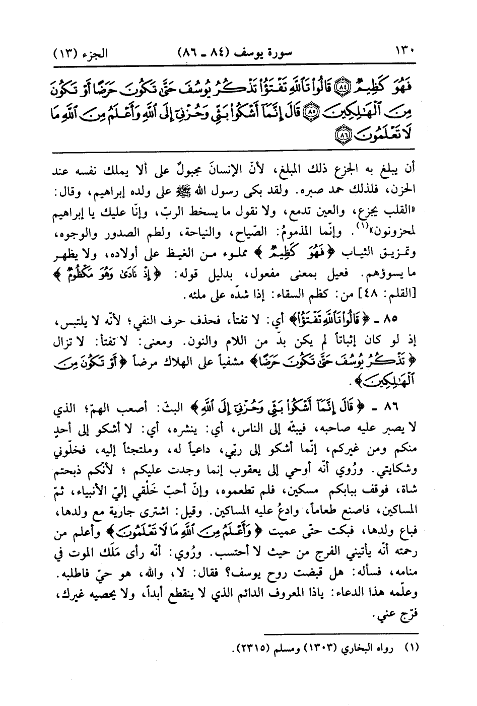 قَالَ إِنَّمَا أَشْكُو بَثِّي وَحُزْنِي إِلَى اللَّهِ وَأَعْلَمُ مِنَ اللَّهِ مَا لَا تَعْلَمُونَ (86)