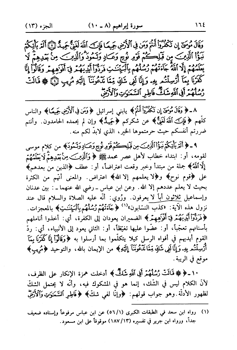 أَلَمْ يَأْتِكُمْ نَبَأُ الَّذِينَ مِنْ قَبْلِكُمْ قَوْمِ نُوحٍ وَعَادٍ وَثَمُودَ وَالَّذِينَ مِنْ بَعْدِهِمْ لَا يَعْلَمُهُمْ إِلَّا اللَّهُ جَاءَتْهُمْ رُسُلُهُمْ بِالْبَيِّنَاتِ فَرَدُّوا أَيْدِيَهُمْ فِي أَفْوَاهِهِمْ وَقَالُوا إِنَّا كَفَرْنَا بِمَا أُرْسِلْتُمْ بِهِ وَإِنَّا لَفِي شَكٍّ مِمَّا تَدْعُونَنَا إِلَيْهِ مُرِيبٍ (9)