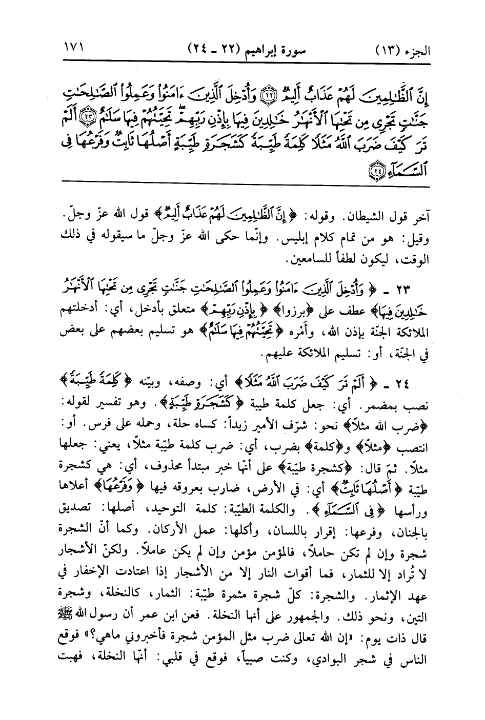 أَلَمْ تَرَ كَيْفَ ضَرَبَ اللَّهُ مَثَلًا كَلِمَةً طَيِّبَةً كَشَجَرَةٍ طَيِّبَةٍ أَصْلُهَا ثَابِتٌ وَفَرْعُهَا فِي السَّمَاءِ (24)