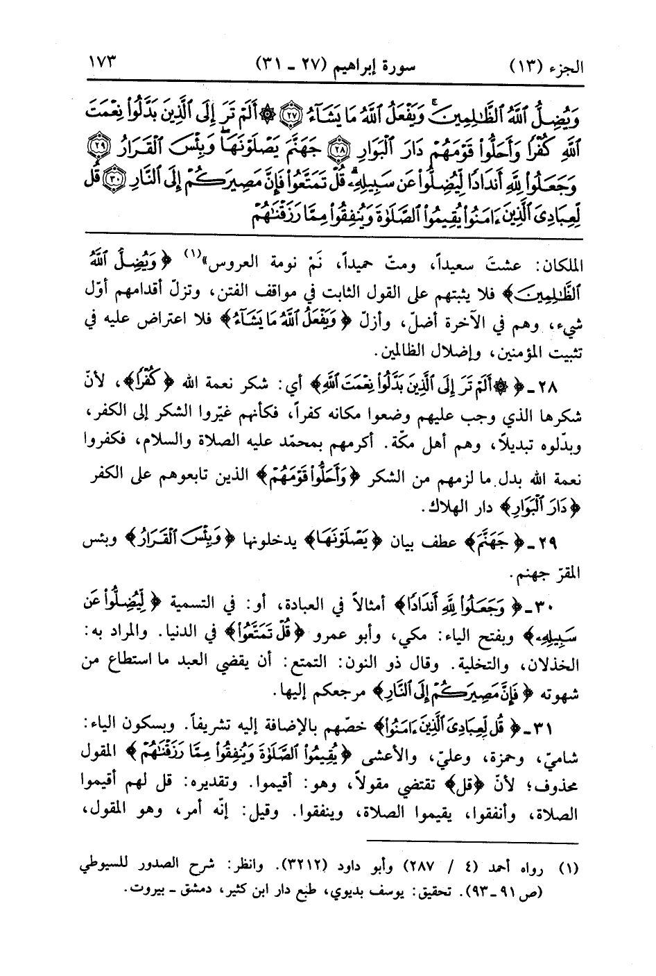 قُلْ لِعِبَادِيَ الَّذِينَ آمَنُوا يُقِيمُوا الصَّلَاةَ وَيُنْفِقُوا مِمَّا رَزَقْنَاهُمْ سِرًّا وَعَلَانِيَةً مِنْ قَبْلِ أَنْ يَأْتِيَ يَوْمٌ لَا بَيْعٌ فِيهِ وَلَا خِلَالٌ (31)