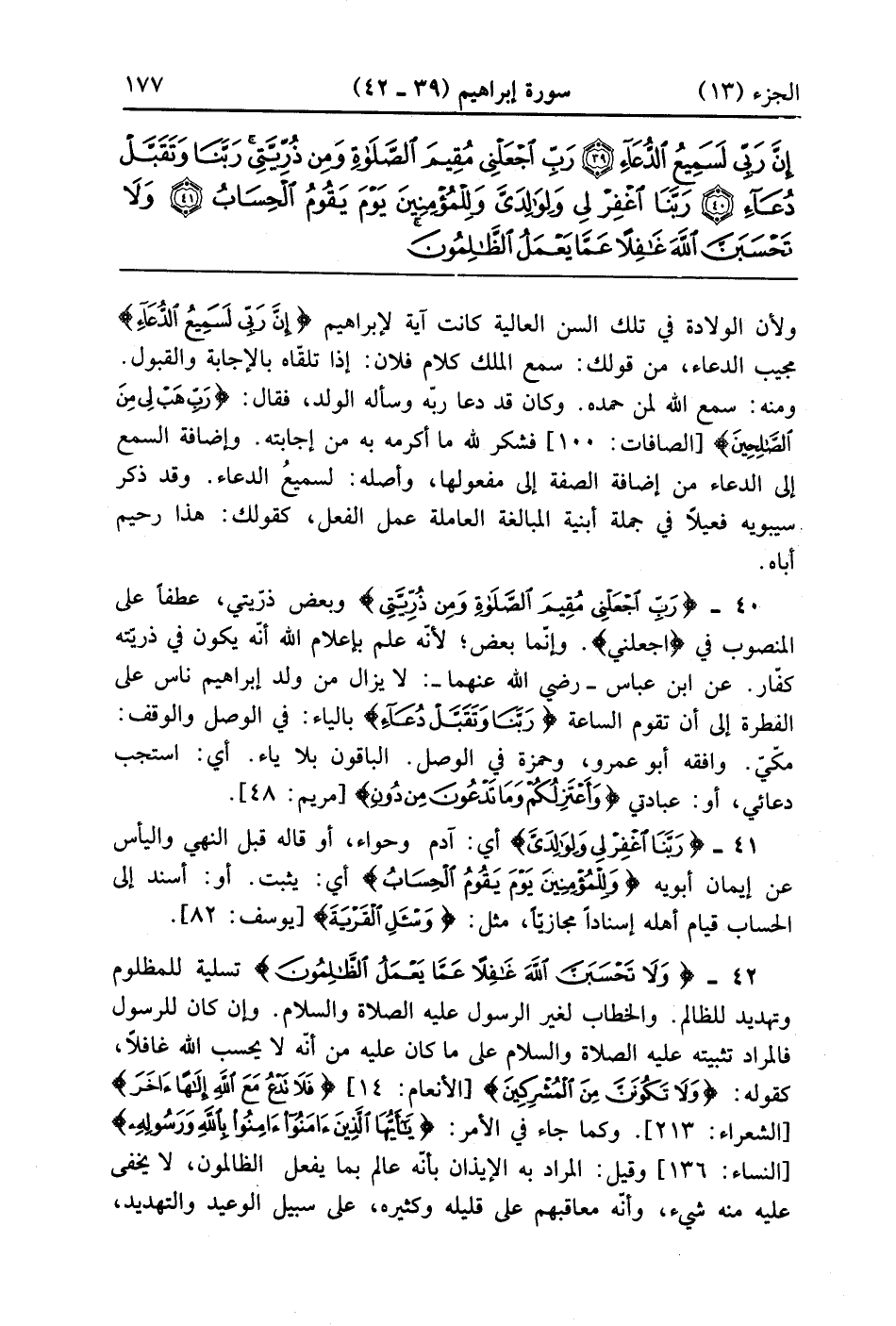 رَبِّ اجْعَلْنِي مُقِيمَ الصَّلَاةِ وَمِنْ ذُرِّيَّتِي رَبَّنَا وَتَقَبَّلْ دُعَاءِ (40)