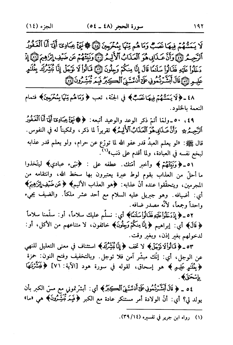 قَالُوا لَا تَوْجَلْ إِنَّا نُبَشِّرُكَ بِغُلَامٍ عَلِيمٍ (53)
