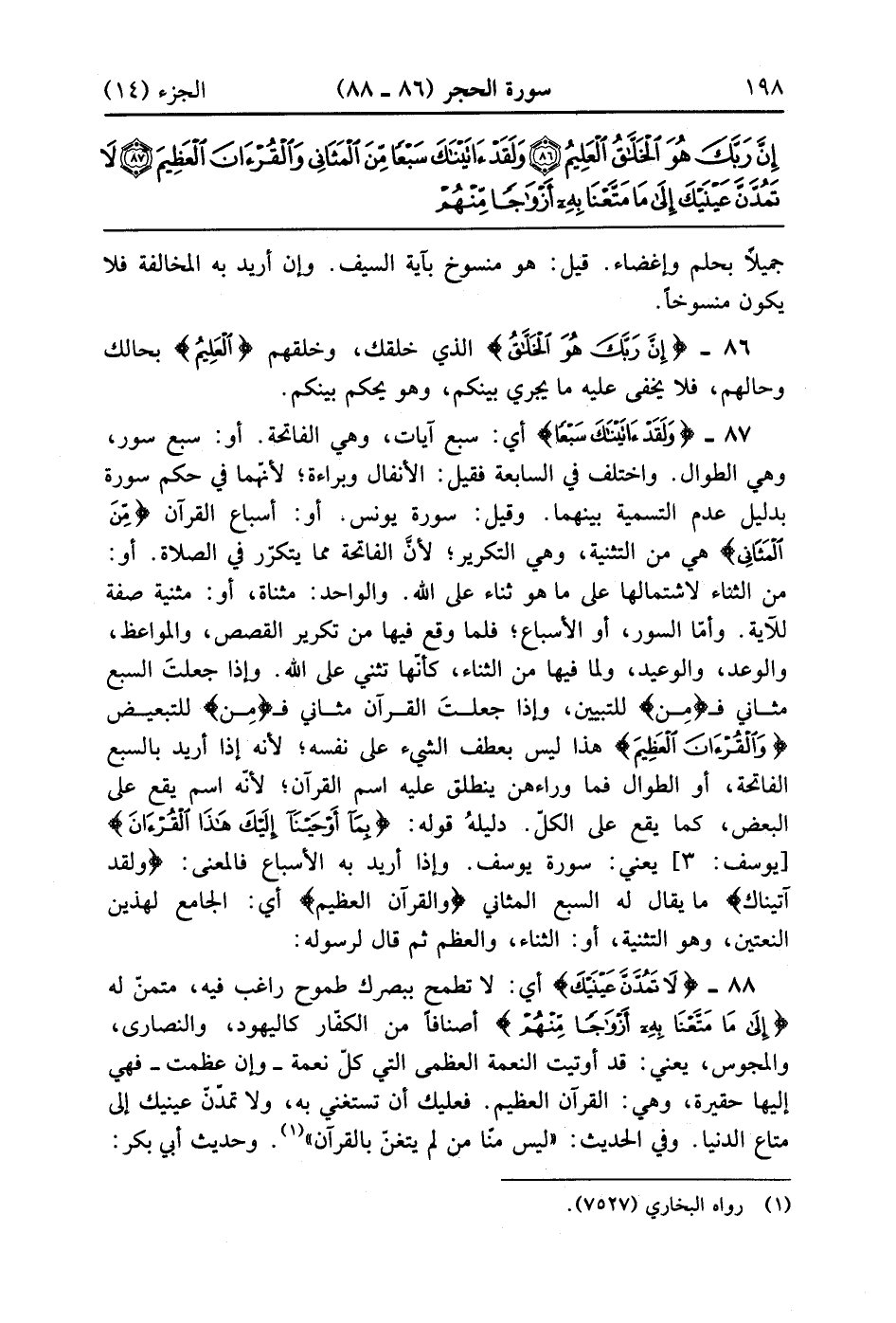 وَلَقَدْ آتَيْنَاكَ سَبْعًا مِنَ الْمَثَانِي وَالْقُرْآنَ الْعَظِيمَ (87)
