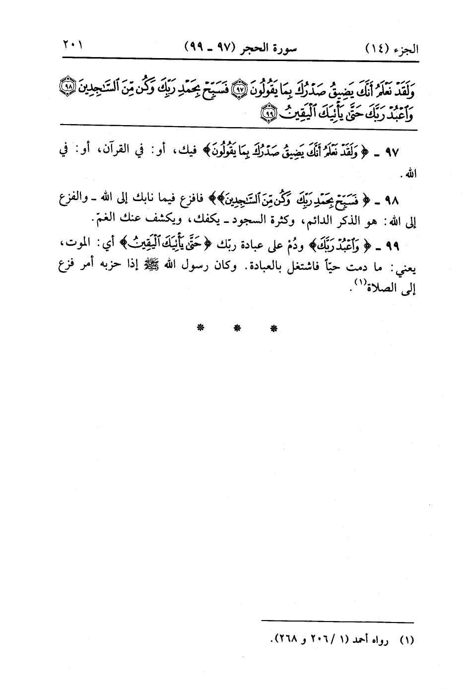 فَسَبِّحْ بِحَمْدِ رَبِّكَ وَكُنْ مِنَ السَّاجِدِينَ (98)