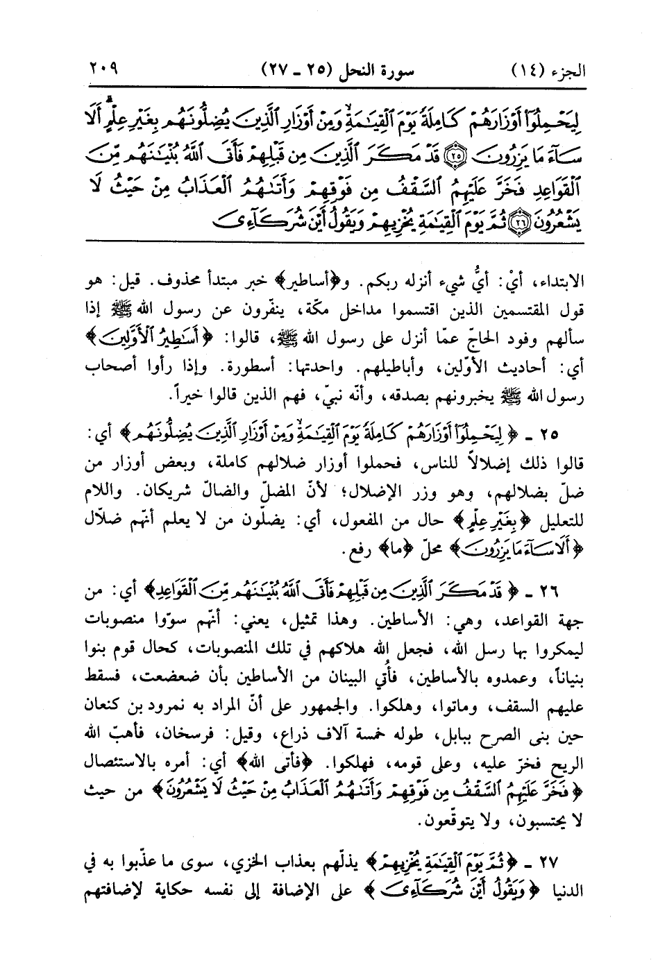 لِيَحْمِلُوا أَوْزَارَهُمْ كَامِلَةً يَوْمَ الْقِيَامَةِ وَمِنْ أَوْزَارِ الَّذِينَ يُضِلُّونَهُمْ بِغَيْرِ عِلْمٍ أَلَا سَاءَ مَا يَزِرُونَ (25)