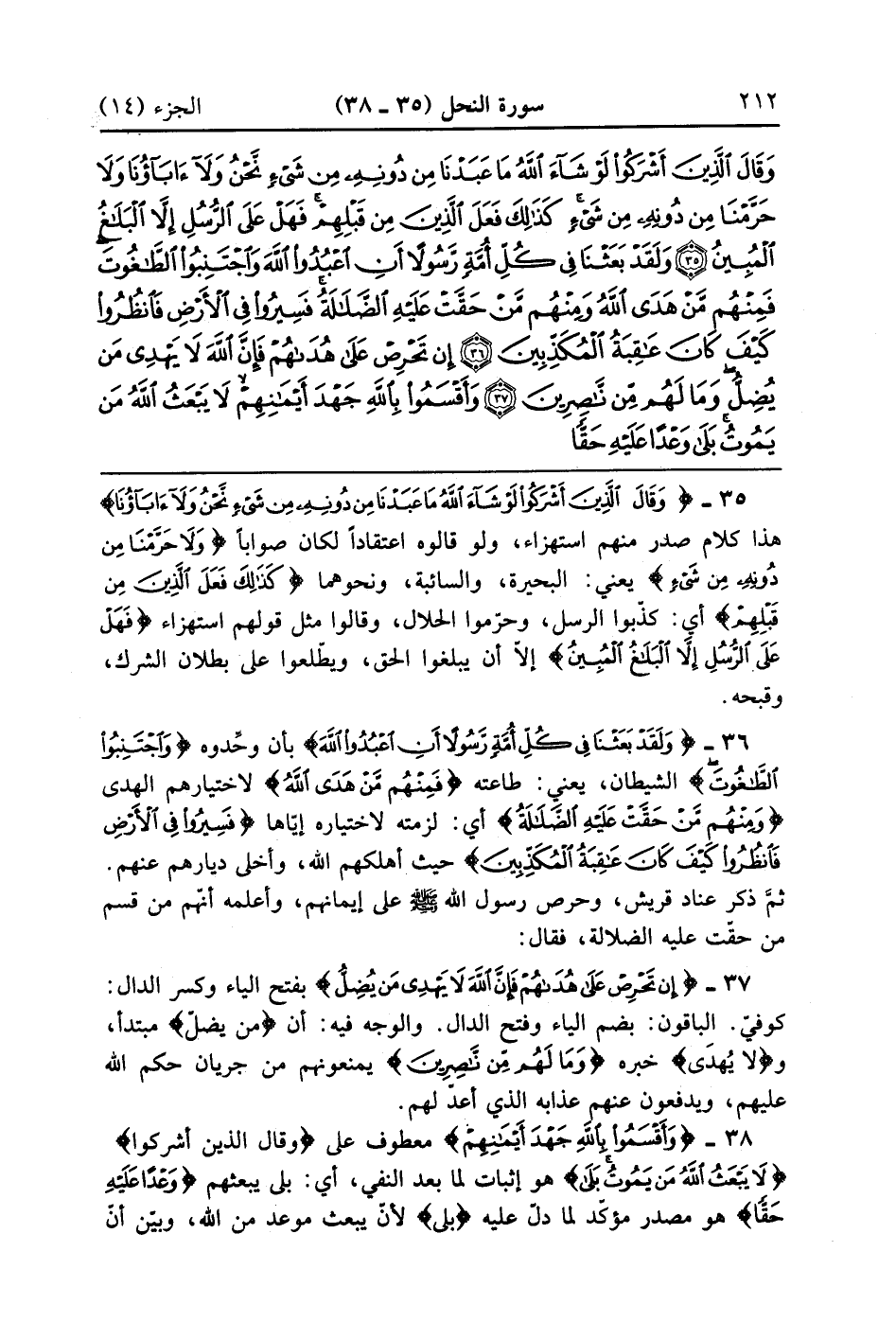 وَقَالَ الَّذِينَ أَشْرَكُوا لَوْ شَاءَ اللَّهُ مَا عَبَدْنَا مِنْ دُونِهِ مِنْ شَيْءٍ نَحْنُ وَلَا آبَاؤُنَا وَلَا حَرَّمْنَا مِنْ دُونِهِ مِنْ شَيْءٍ كَذَلِكَ فَعَلَ الَّذِينَ مِنْ قَبْلِهِمْ فَهَلْ عَلَى الرُّسُلِ إِلَّا الْبَلَاغُ الْمُبِينُ (35)