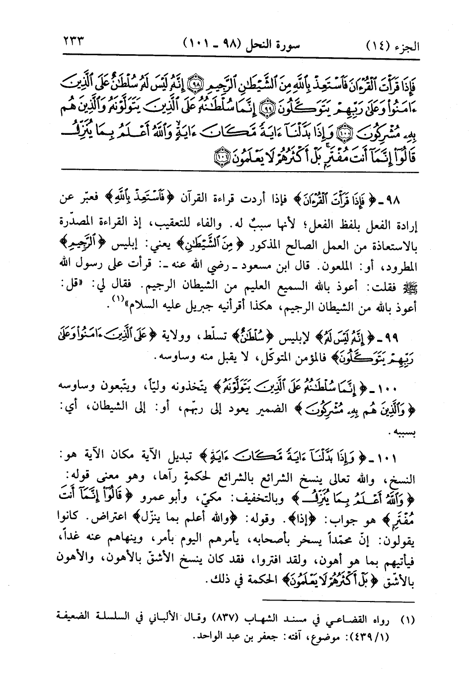 فَإِذَا قَرَأْتَ الْقُرْآنَ فَاسْتَعِذْ بِاللَّهِ مِنَ الشَّيْطَانِ الرَّجِيمِ (98)