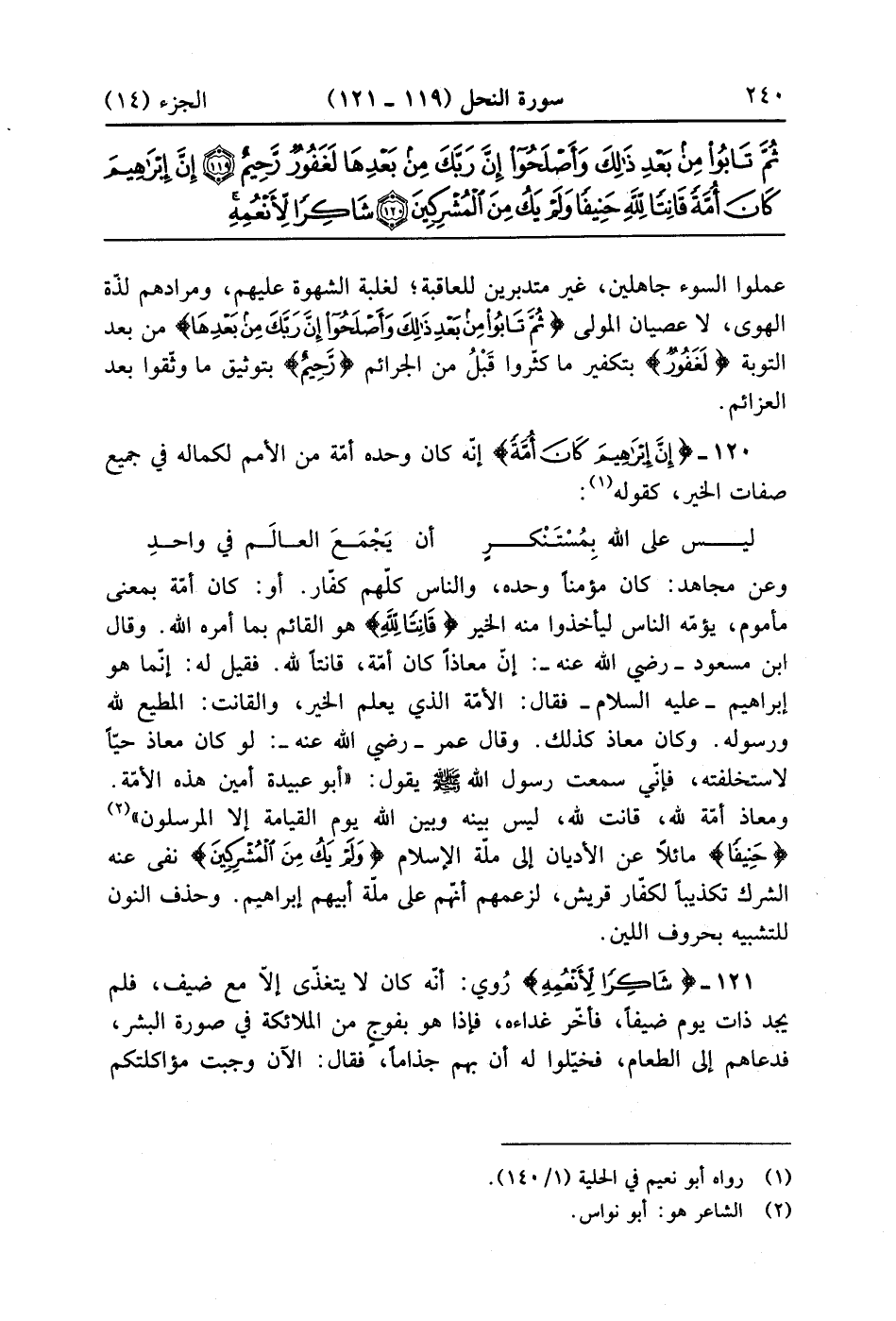 إِنَّ إِبْرَاهِيمَ كَانَ أُمَّةً قَانِتًا لِلَّهِ حَنِيفًا وَلَمْ يَكُ مِنَ الْمُشْرِكِينَ (120)
