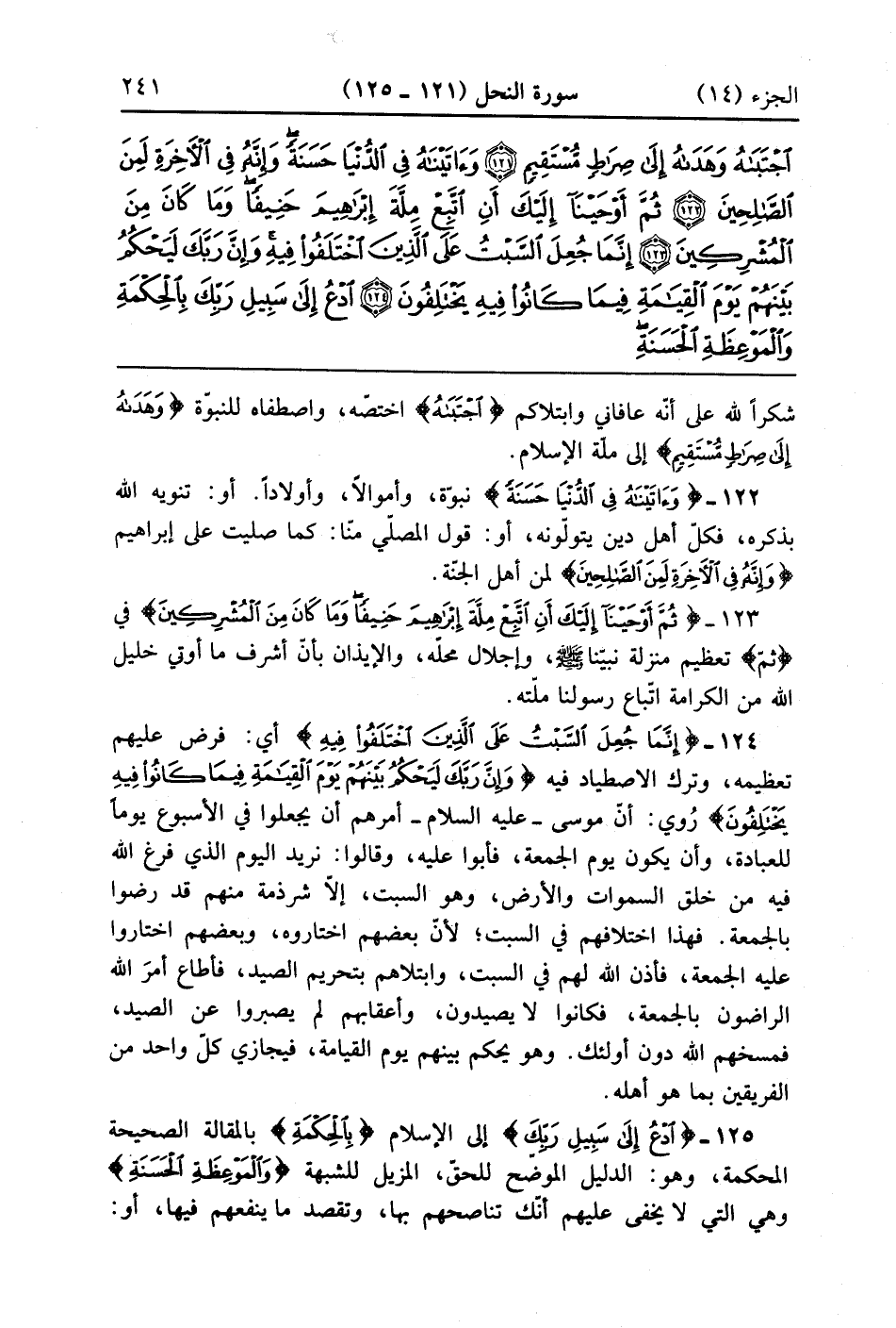 إِنَّمَا جُعِلَ السَّبْتُ عَلَى الَّذِينَ اخْتَلَفُوا فِيهِ وَإِنَّ رَبَّكَ لَيَحْكُمُ بَيْنَهُمْ يَوْمَ الْقِيَامَةِ فِيمَا كَانُوا فِيهِ يَخْتَلِفُونَ (124)