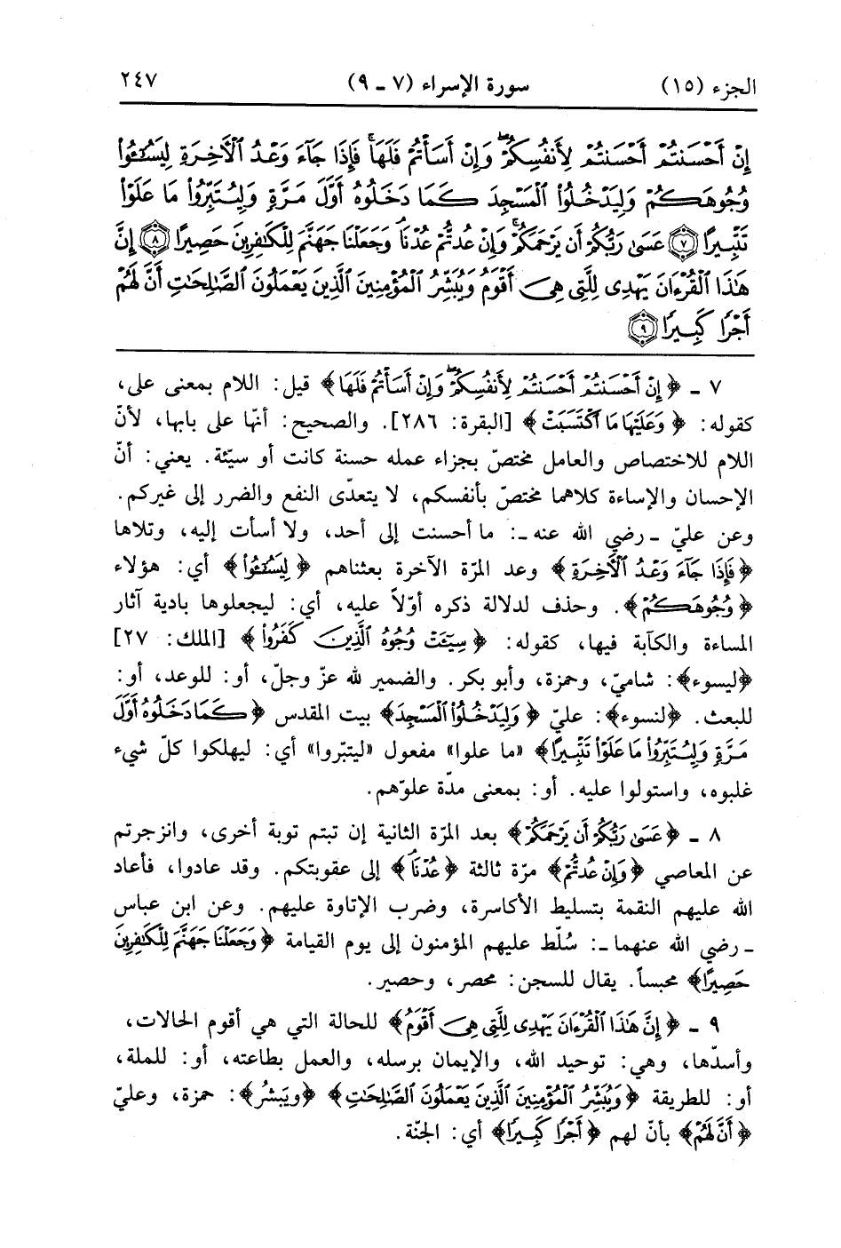 إِنْ أَحْسَنْتُمْ أَحْسَنْتُمْ لِأَنْفُسِكُمْ وَإِنْ أَسَأْتُمْ فَلَهَا فَإِذَا جَاءَ وَعْدُ الْآخِرَةِ لِيَسُوءُوا وُجُوهَكُمْ وَلِيَدْخُلُوا الْمَسْجِدَ كَمَا دَخَلُوهُ أَوَّلَ مَرَّةٍ وَلِيُتَبِّرُوا مَا عَلَوْا تَتْبِيرًا (7)