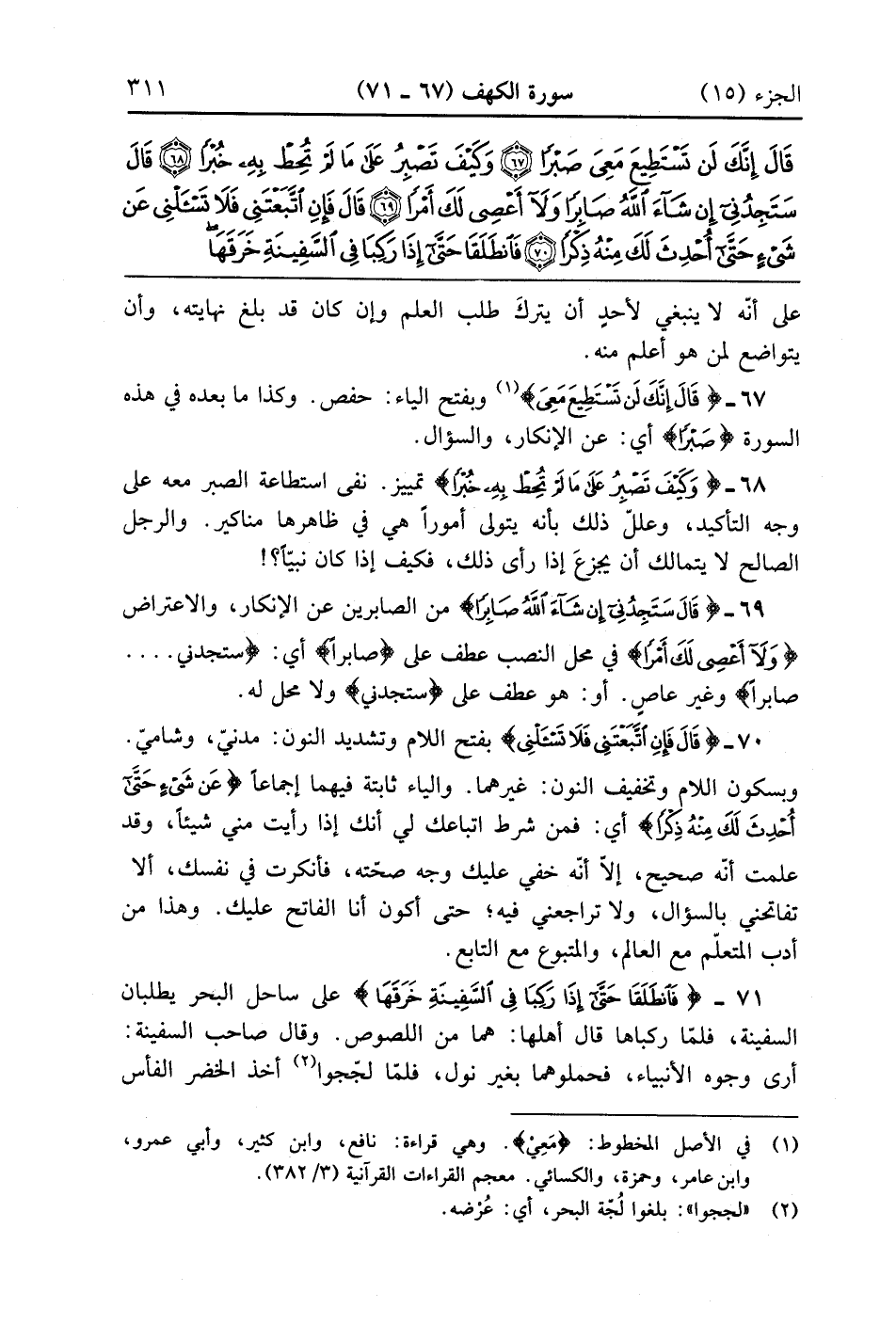 قَالَ إِنَّكَ لَنْ تَسْتَطِيعَ مَعِيَ صَبْرًا (67)