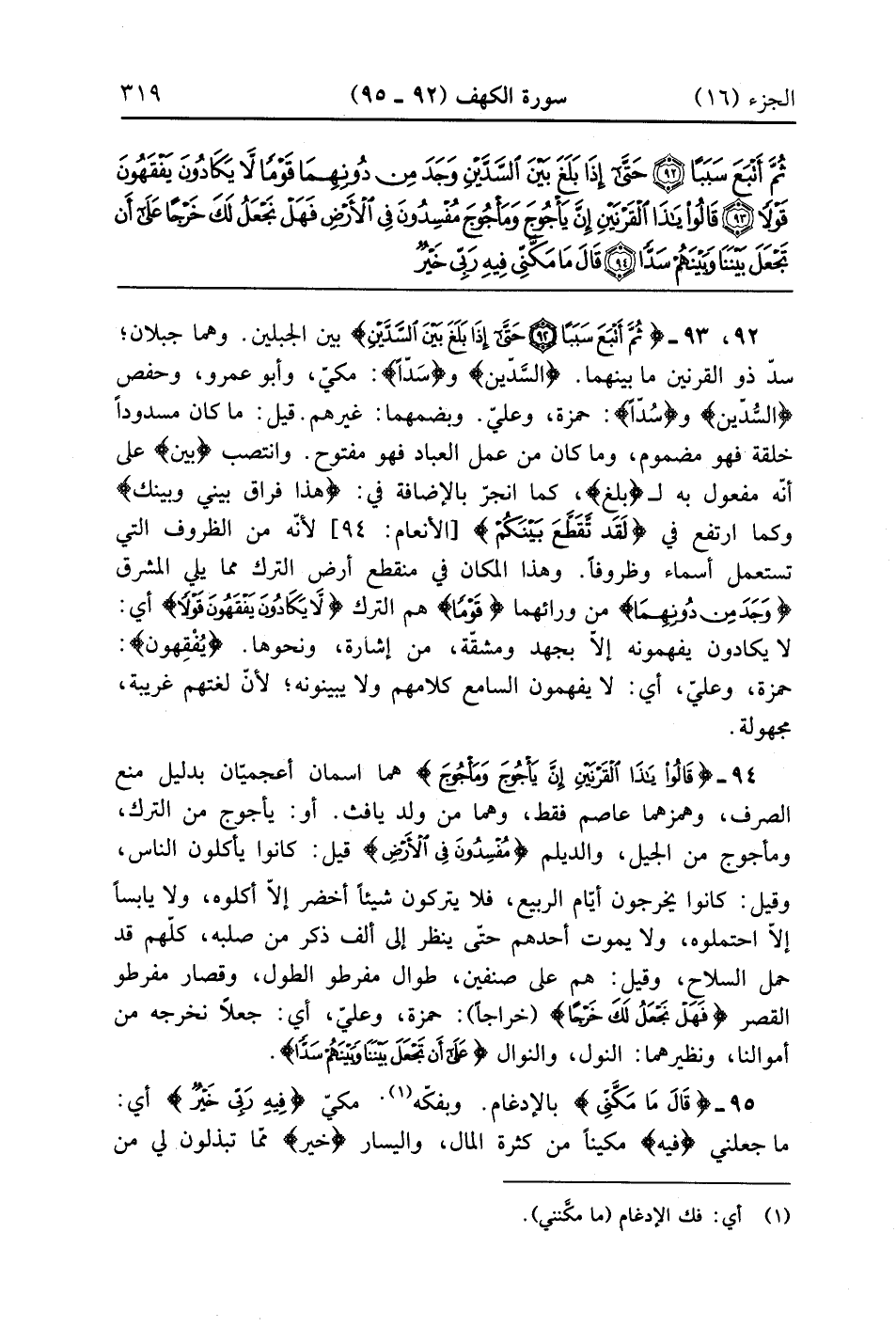 قَالُوا يَا ذَا الْقَرْنَيْنِ إِنَّ يَأْجُوجَ وَمَأْجُوجَ مُفْسِدُونَ فِي الْأَرْضِ فَهَلْ نَجْعَلُ لَكَ خَرْجًا عَلَى أَنْ تَجْعَلَ بَيْنَنَا وَبَيْنَهُمْ سَدًّا (94)