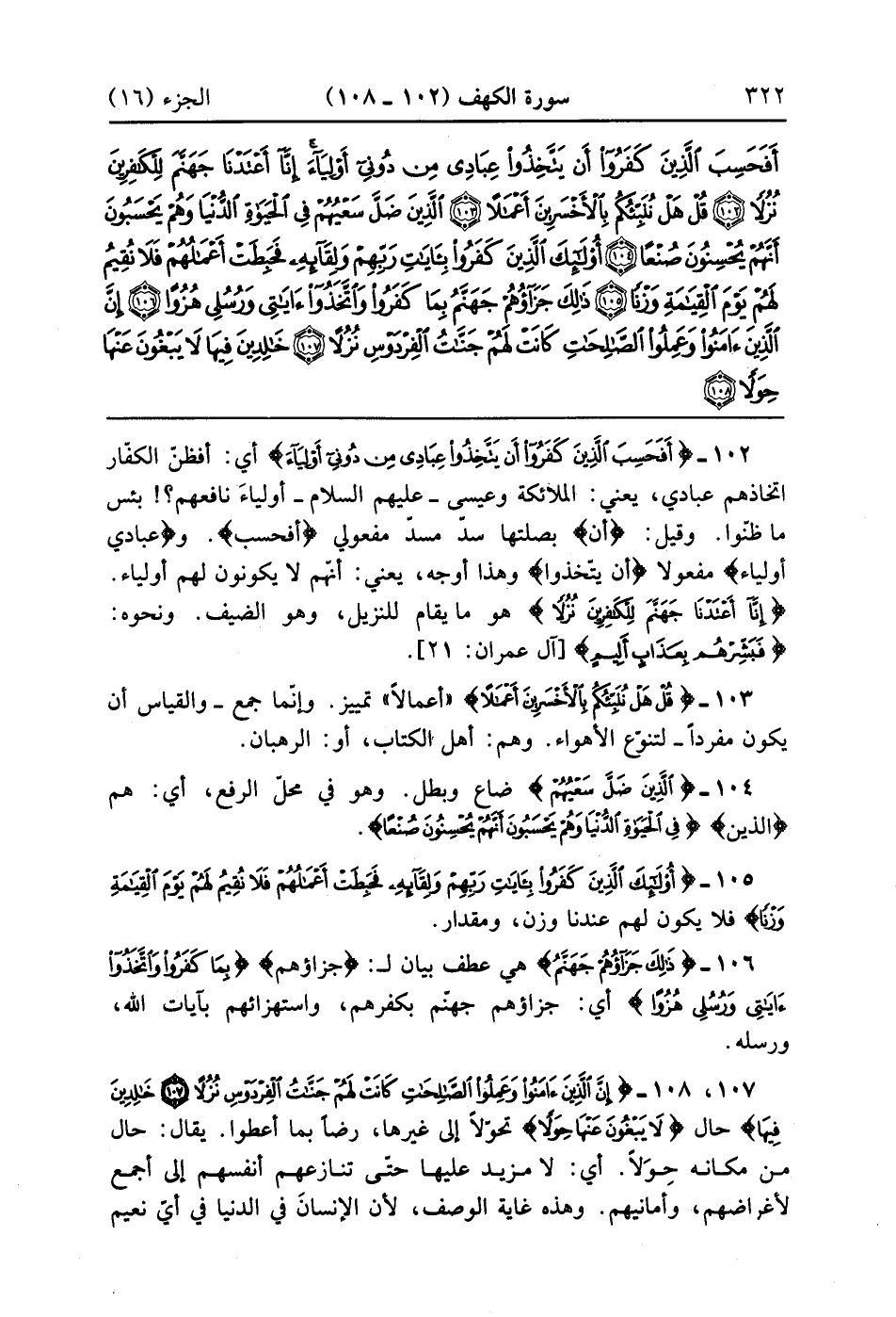 أَفَحَسِبَ الَّذِينَ كَفَرُوا أَنْ يَتَّخِذُوا عِبَادِي مِنْ دُونِي أَوْلِيَاءَ إِنَّا أَعْتَدْنَا جَهَنَّمَ لِلْكَافِرِينَ نُزُلًا (102)