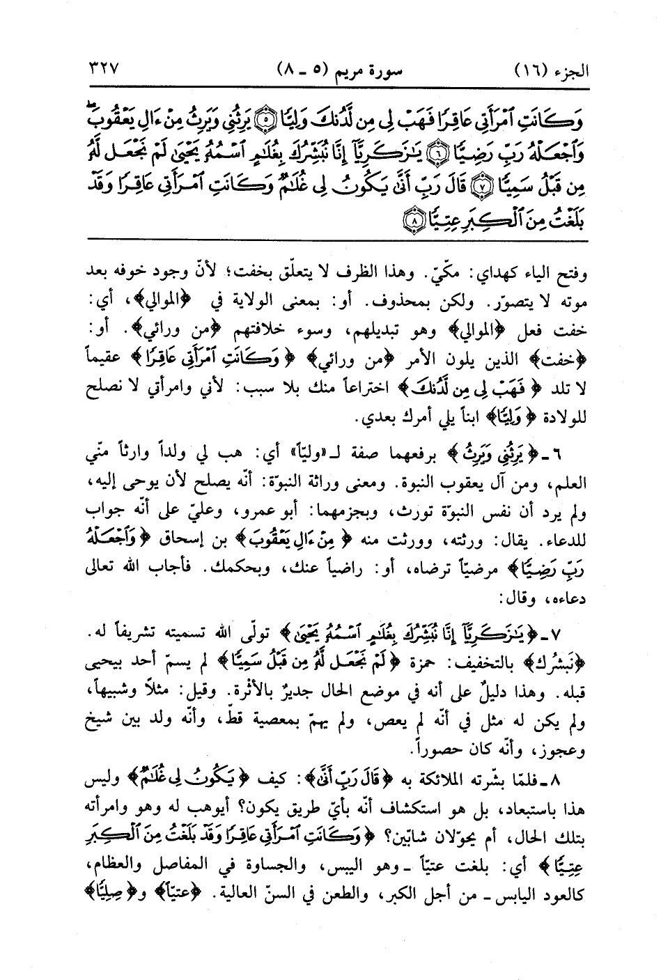قَالَ رَبِّ أَنَّى يَكُونُ لِي غُلَامٌ وَكَانَتِ امْرَأَتِي عَاقِرًا وَقَدْ بَلَغْتُ مِنَ الْكِبَرِ عِتِيًّا (8)