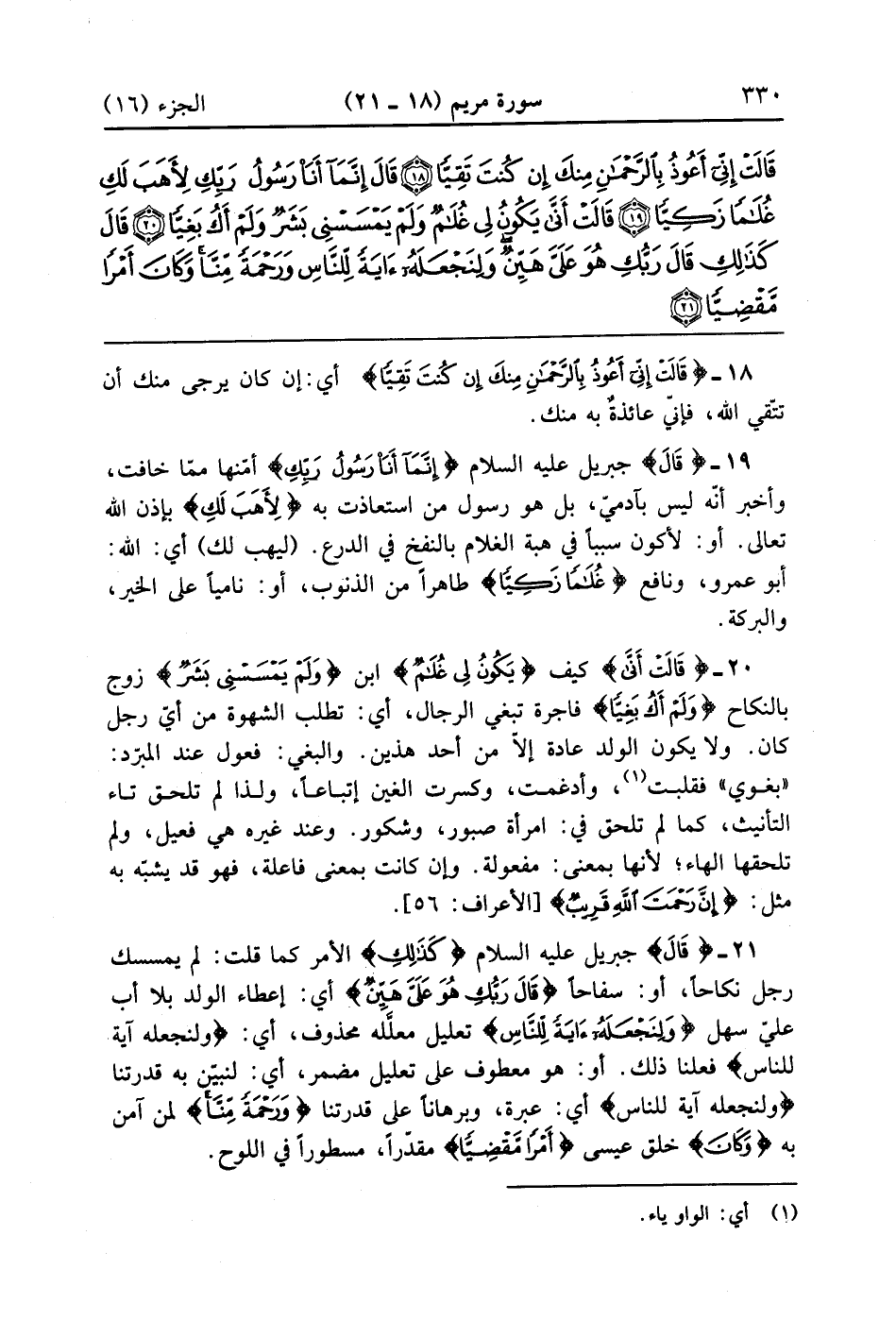 قَالَتْ أَنَّى يَكُونُ لِي غُلَامٌ وَلَمْ يَمْسَسْنِي بَشَرٌ وَلَمْ أَكُ بَغِيًّا (20)