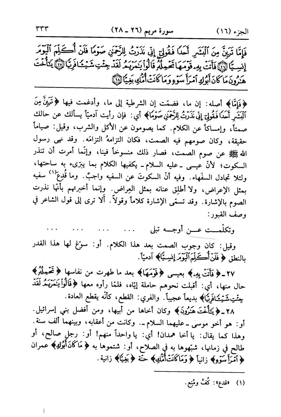 يَا أُخْتَ هَارُونَ مَا كَانَ أَبُوكِ امْرَأَ سَوْءٍ وَمَا كَانَتْ أُمُّكِ بَغِيًّا (28)