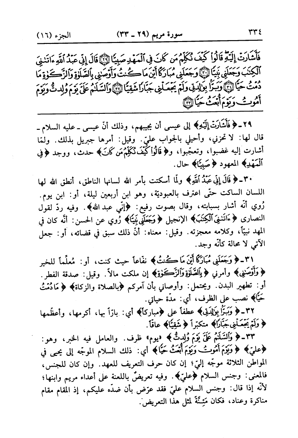 وَالسَّلَامُ عَلَيَّ يَوْمَ وُلِدْتُ وَيَوْمَ أَمُوتُ وَيَوْمَ أُبْعَثُ حَيًّا (33)