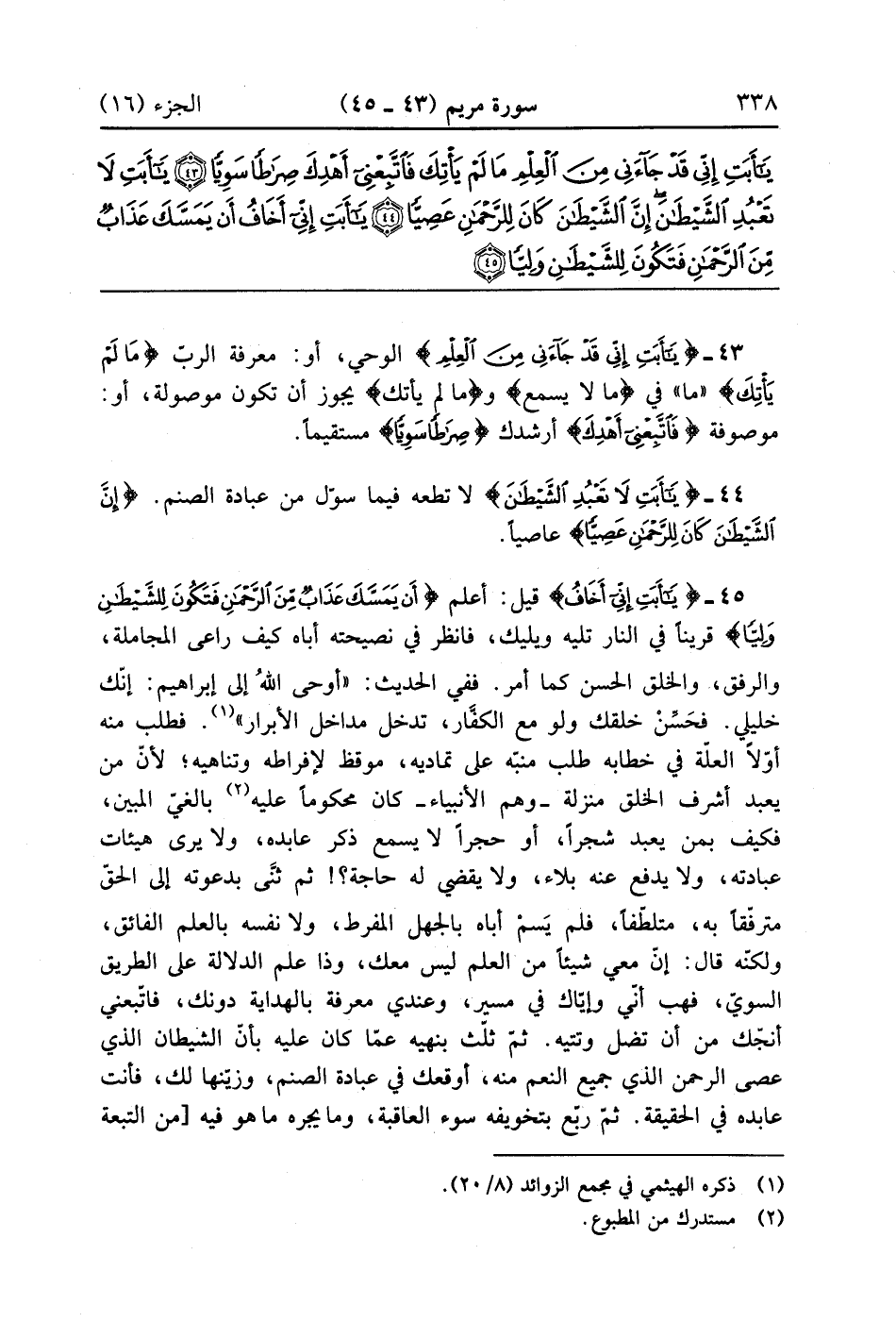 يَا أَبَتِ لَا تَعْبُدِ الشَّيْطَانَ إِنَّ الشَّيْطَانَ كَانَ لِلرَّحْمَنِ عَصِيًّا (44)