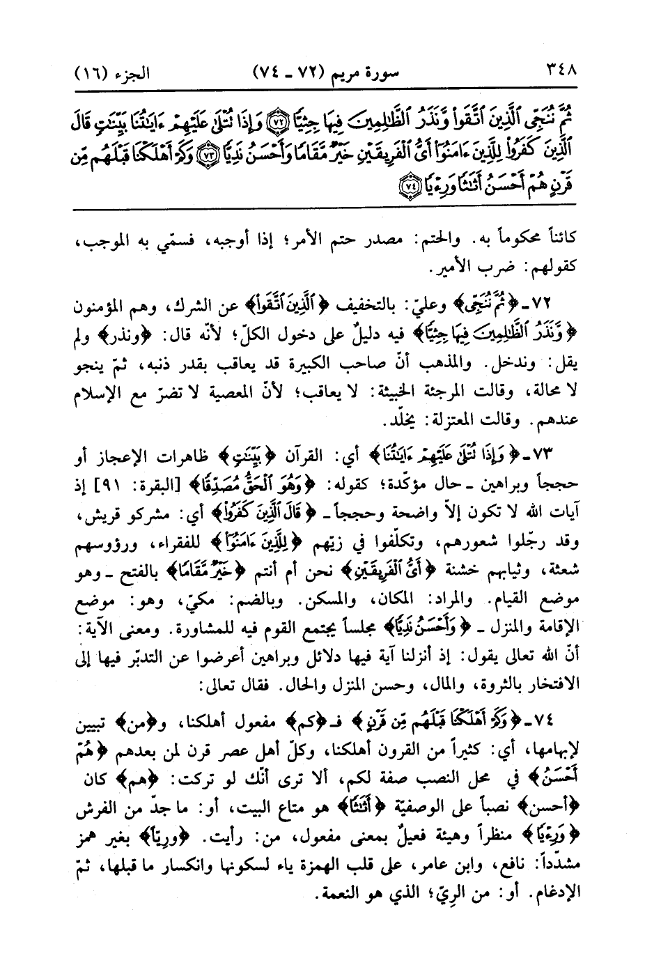 وَكَمْ أَهْلَكْنَا قَبْلَهُمْ مِنْ قَرْنٍ هُمْ أَحْسَنُ أَثَاثًا وَرِئْيًا (74)