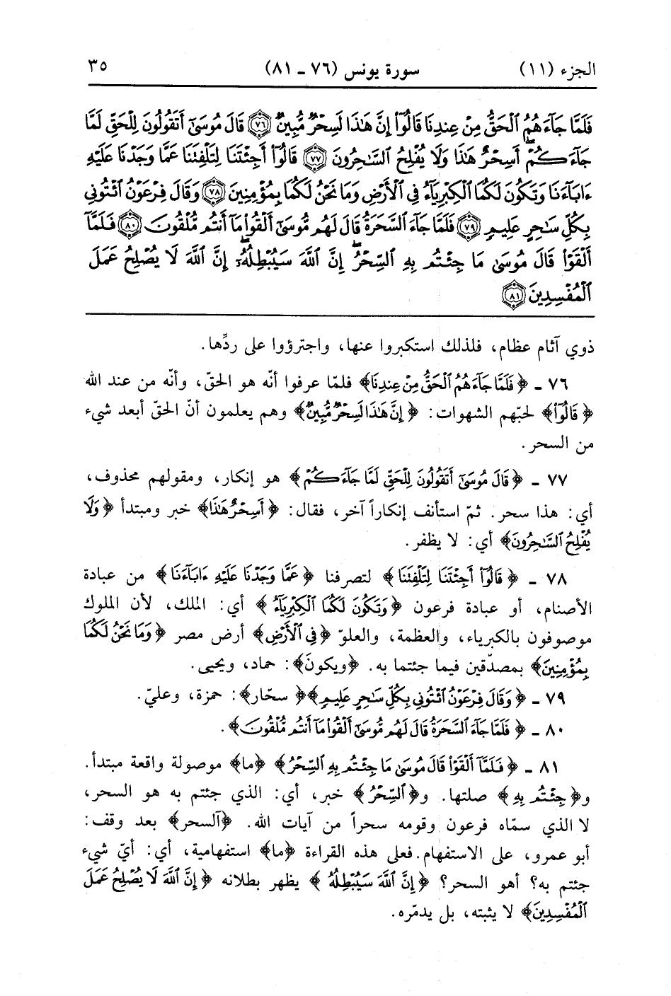 فَلَمَّا جَاءَ السَّحَرَةُ قَالَ لَهُمْ مُوسَى أَلْقُوا مَا أَنْتُمْ مُلْقُونَ (80) فَلَمَّا أَلْقَوْا قَالَ مُوسَى مَا جِئْتُمْ بِهِ السِّحْرُ إِنَّ اللَّهَ سَيُبْطِلُهُ إِنَّ اللَّهَ لَا يُصْلِحُ عَمَلَ الْمُفْسِدِينَ (81)