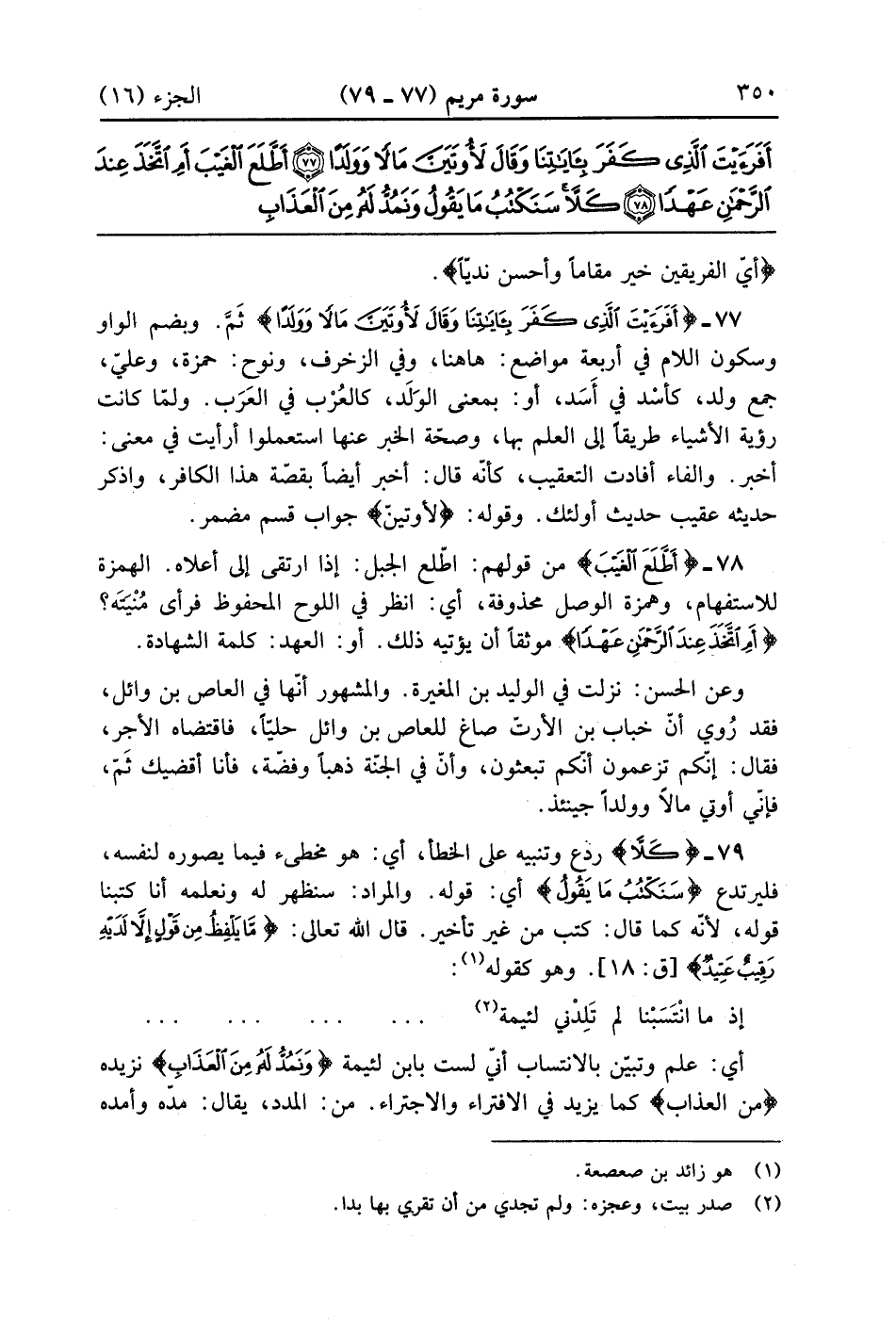 أَفَرَأَيْتَ الَّذِي كَفَرَ بِآيَاتِنَا وَقَالَ لَأُوتَيَنَّ مَالًا وَوَلَدًا (77)