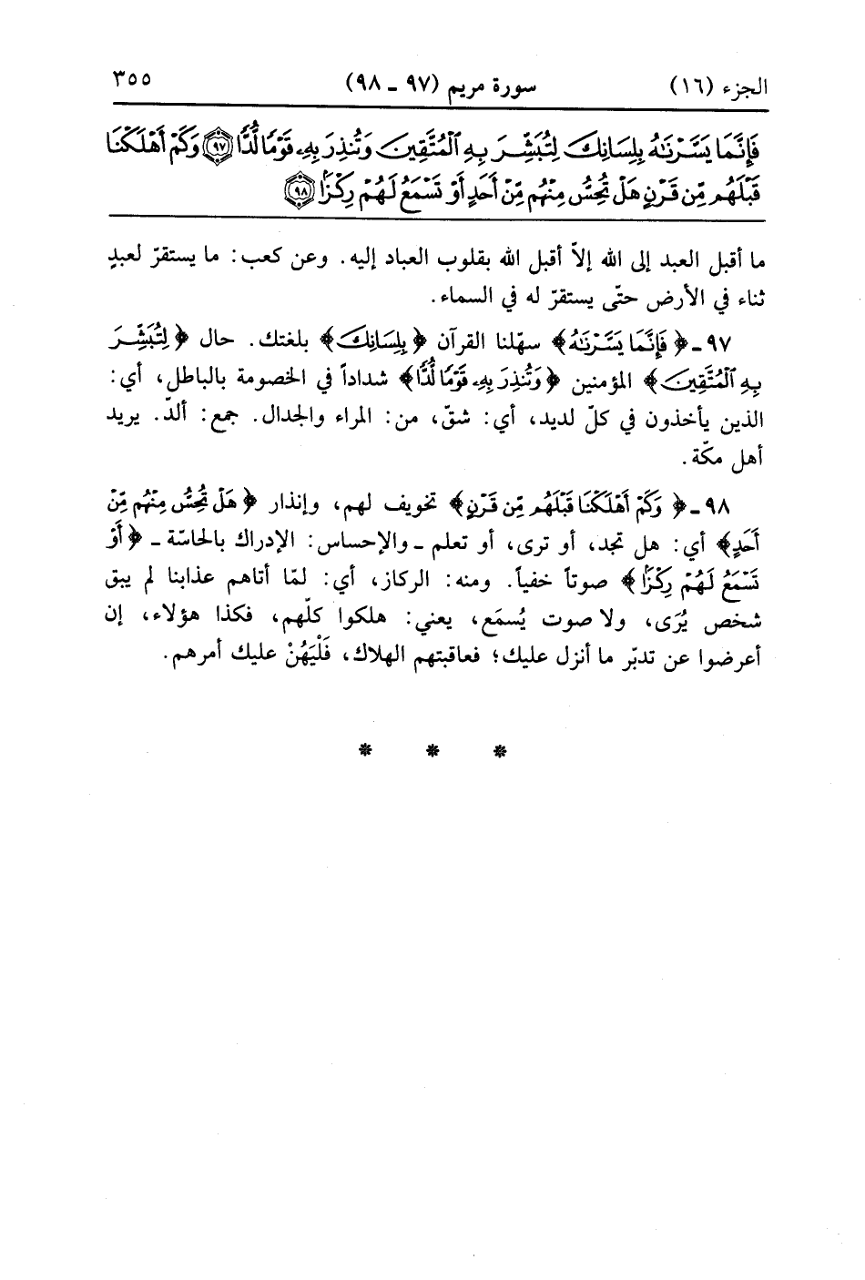 فَإِنَّمَا يَسَّرْنَاهُ بِلِسَانِكَ لِتُبَشِّرَ بِهِ الْمُتَّقِينَ وَتُنْذِرَ بِهِ قَوْمًا لُدًّا (97)