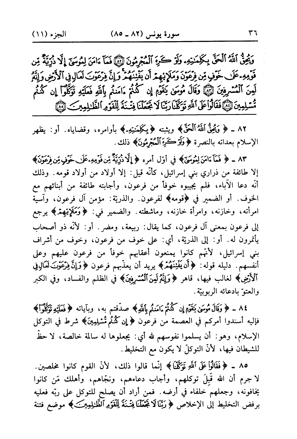 فَمَا آمَنَ لِمُوسَى إِلَّا ذُرِّيَّةٌ مِنْ قَوْمِهِ عَلَى خَوْفٍ مِنْ فِرْعَوْنَ وَمَلَئِهِمْ أَنْ يَفْتِنَهُمْ وَإِنَّ فِرْعَوْنَ لَعَالٍ فِي الْأَرْضِ وَإِنَّهُ لَمِنَ الْمُسْرِفِينَ (83)