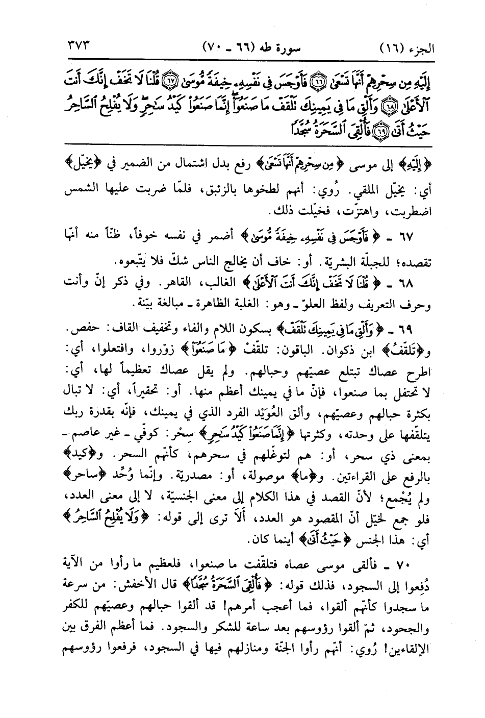 وَأَلْقِ مَا فِي يَمِينِكَ تَلْقَفْ مَا صَنَعُوا إِنَّمَا صَنَعُوا كَيْدُ سَاحِرٍ وَلَا يُفْلِحُ السَّاحِرُ حَيْثُ أَتَى (69)