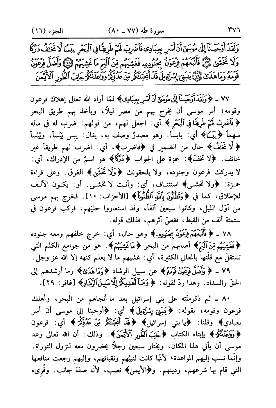 وَلَقَدْ أَوْحَيْنَا إِلَى مُوسَى أَنْ أَسْرِ بِعِبَادِي فَاضْرِبْ لَهُمْ طَرِيقًا فِي الْبَحْرِ يَبَسًا لَا تَخَافُ دَرَكًا وَلَا تَخْشَى (77)