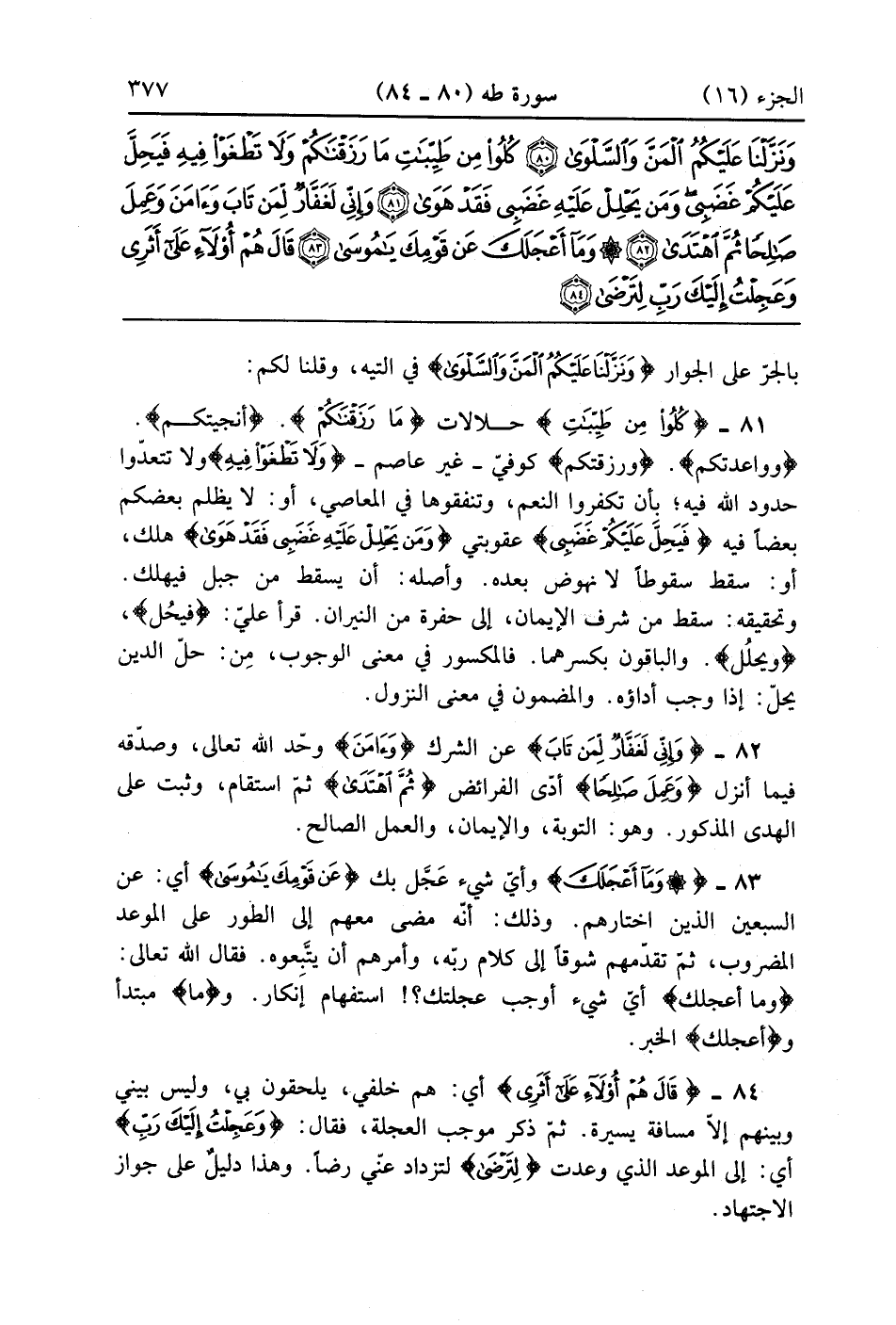 كُلُوا مِنْ طَيِّبَاتِ مَا رَزَقْنَاكُمْ وَلَا تَطْغَوْا فِيهِ فَيَحِلَّ عَلَيْكُمْ غَضَبِي وَمَنْ يَحْلِلْ عَلَيْهِ غَضَبِي فَقَدْ هَوَى (81)