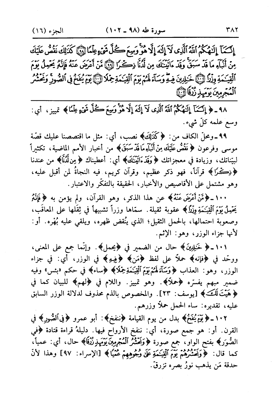مَنْ أَعْرَضَ عَنْهُ فَإِنَّهُ يَحْمِلُ يَوْمَ الْقِيَامَةِ وِزْرًا (100)