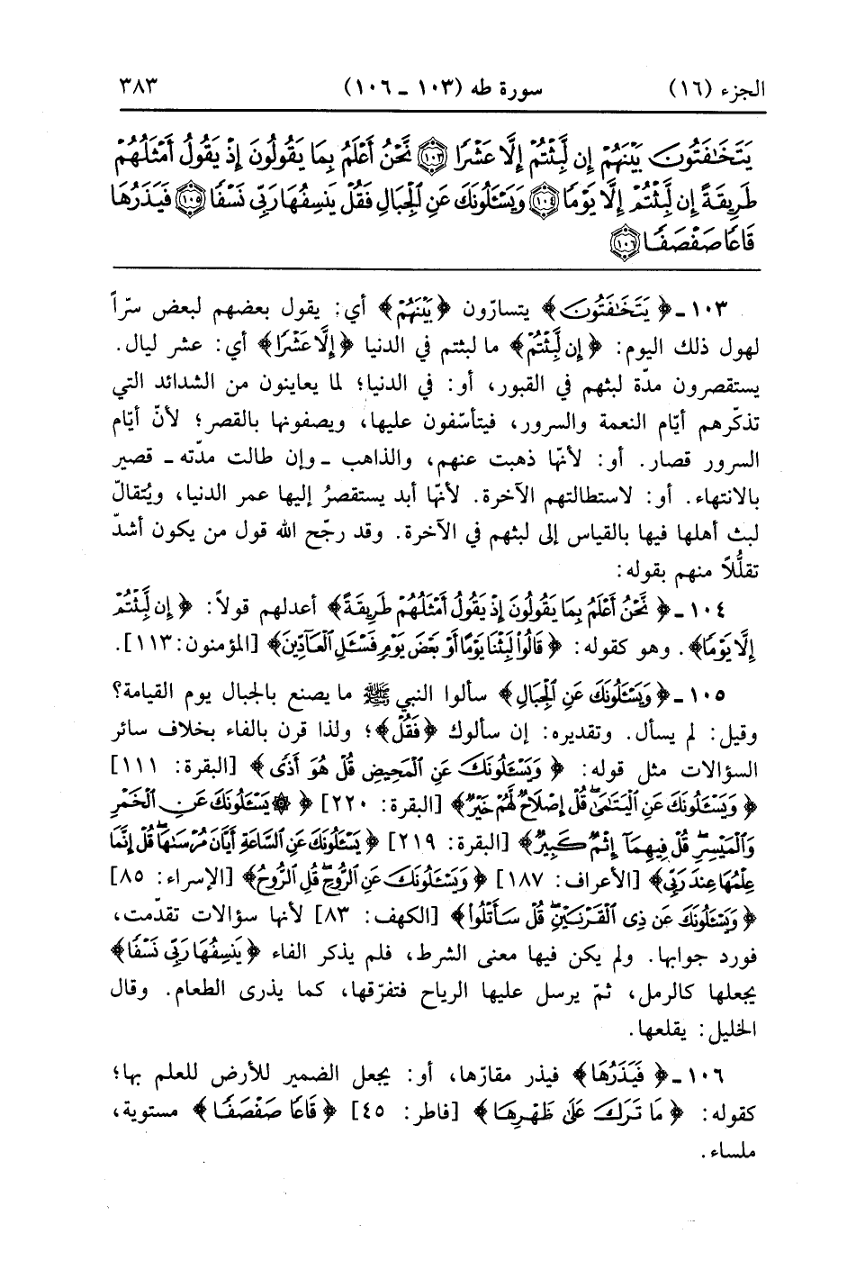 وَيَسْأَلُونَكَ عَنِ الْجِبَالِ فَقُلْ يَنْسِفُهَا رَبِّي نَسْفًا (105)