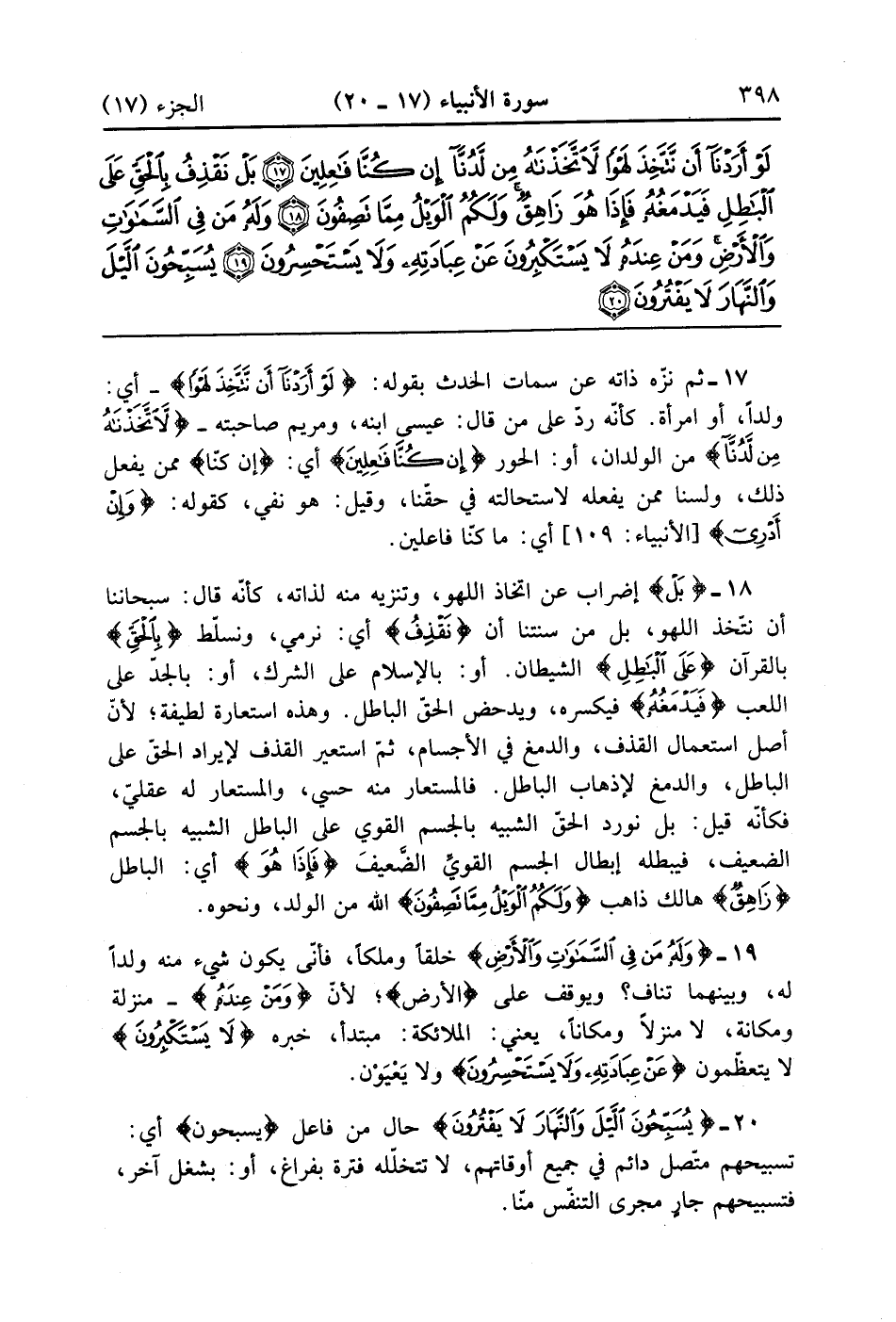 لَوْ أَرَدْنَا أَنْ نَتَّخِذَ لَهْوًا لَاتَّخَذْنَاهُ مِنْ لَدُنَّا إِنْ كُنَّا فَاعِلِينَ (17)
