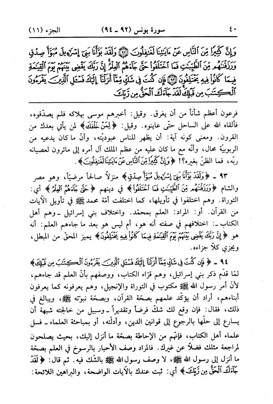 وَلَقَدْ بَوَّأْنَا بَنِي إِسْرَائِيلَ مُبَوَّأَ صِدْقٍ وَرَزَقْنَاهُمْ مِنَ الطَّيِّبَاتِ فَمَا اخْتَلَفُوا حَتَّى جَاءَهُمُ الْعِلْمُ إِنَّ رَبَّكَ يَقْضِي بَيْنَهُمْ يَوْمَ الْقِيَامَةِ فِيمَا كَانُوا فِيهِ يَخْتَلِفُونَ (93)