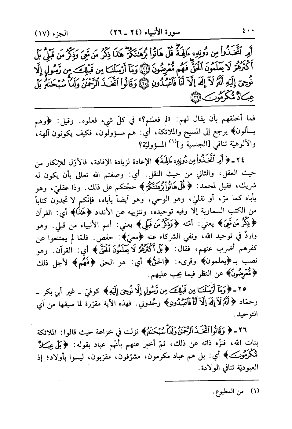 أَمِ اتَّخَذُوا مِنْ دُونِهِ آلِهَةً قُلْ هَاتُوا بُرْهَانَكُمْ هَذَا ذِكْرُ مَنْ مَعِيَ وَذِكْرُ مَنْ قَبْلِي بَلْ أَكْثَرُهُمْ لَا يَعْلَمُونَ الْحَقَّ فَهُمْ مُعْرِضُونَ (24)