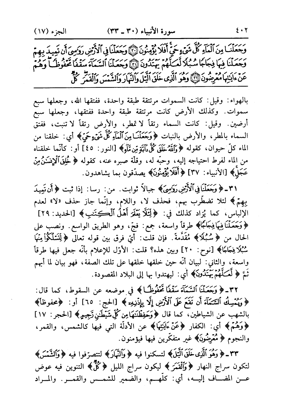 وَجَعَلْنَا فِي الْأَرْضِ رَوَاسِيَ أَنْ تَمِيدَ بِهِمْ وَجَعَلْنَا فِيهَا فِجَاجًا سُبُلًا لَعَلَّهُمْ يَهْتَدُونَ (31)