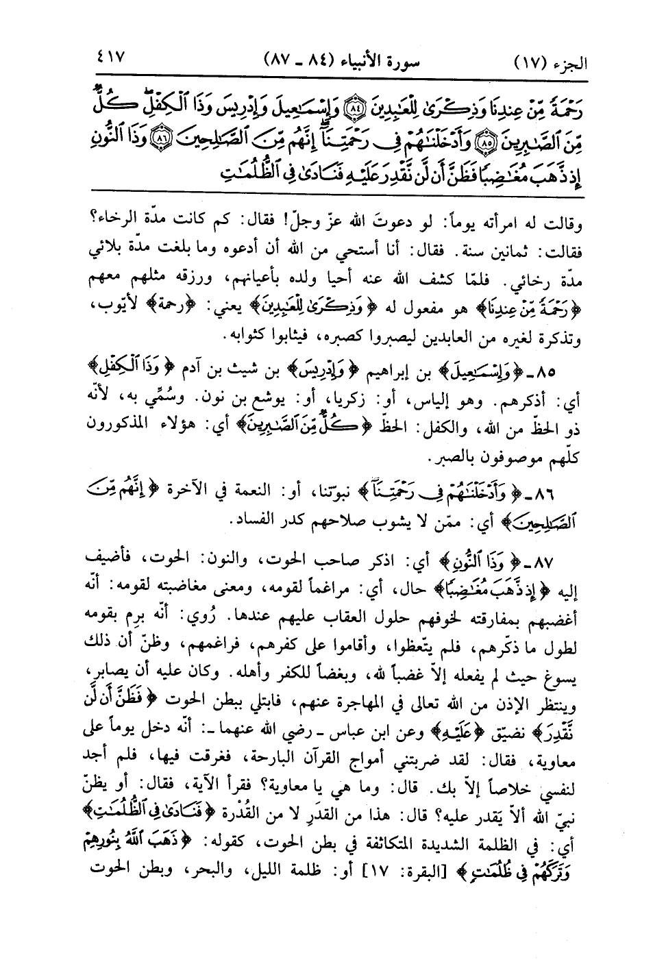 وَإِسْمَاعِيلَ وَإِدْرِيسَ وَذَا الْكِفْلِ كُلٌّ مِنَ الصَّابِرِينَ (85)