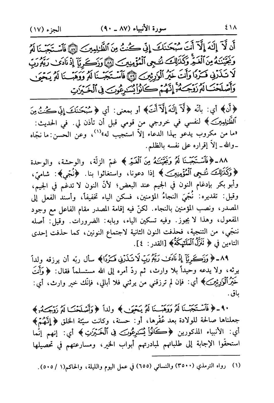 فَاسْتَجَبْنَا لَهُ وَوَهَبْنَا لَهُ يَحْيَى وَأَصْلَحْنَا لَهُ زَوْجَهُ إِنَّهُمْ كَانُوا يُسَارِعُونَ فِي الْخَيْرَاتِ وَيَدْعُونَنَا رَغَبًا وَرَهَبًا وَكَانُوا لَنَا خَاشِعِينَ (90)