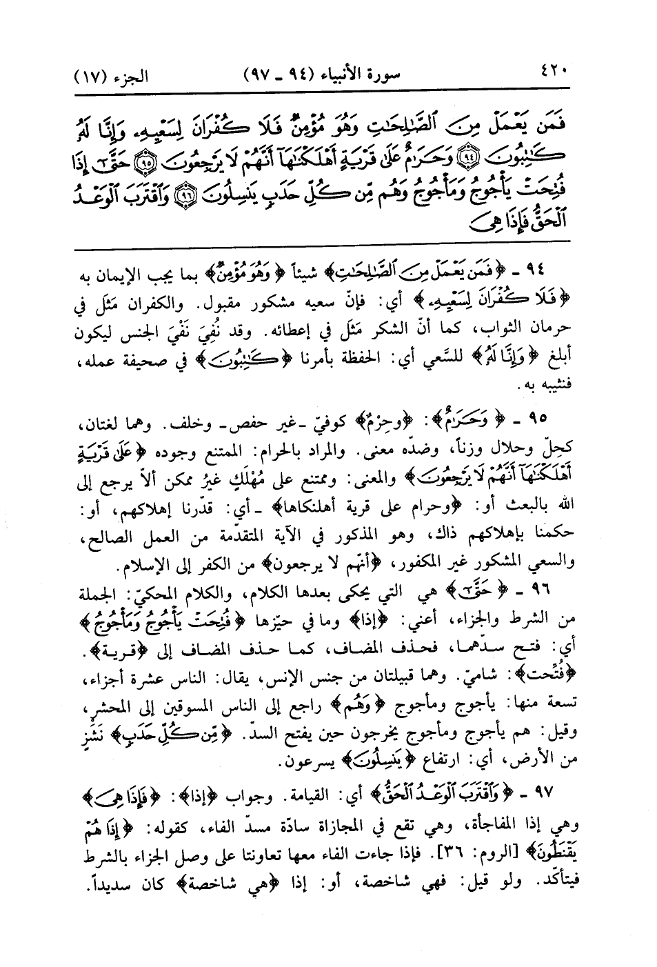 فَمَنْ يَعْمَلْ مِنَ الصَّالِحَاتِ وَهُوَ مُؤْمِنٌ فَلَا كُفْرَانَ لِسَعْيِهِ وَإِنَّا لَهُ كَاتِبُونَ (94)