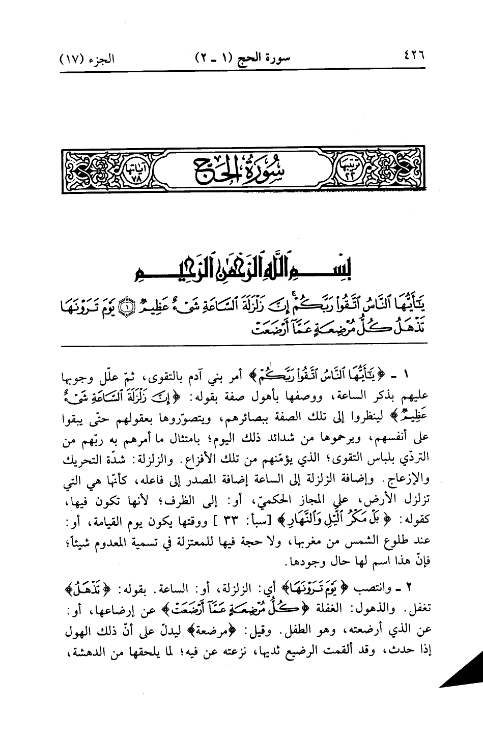 سورة الحج مكية وهي ثمان وسبعون اية