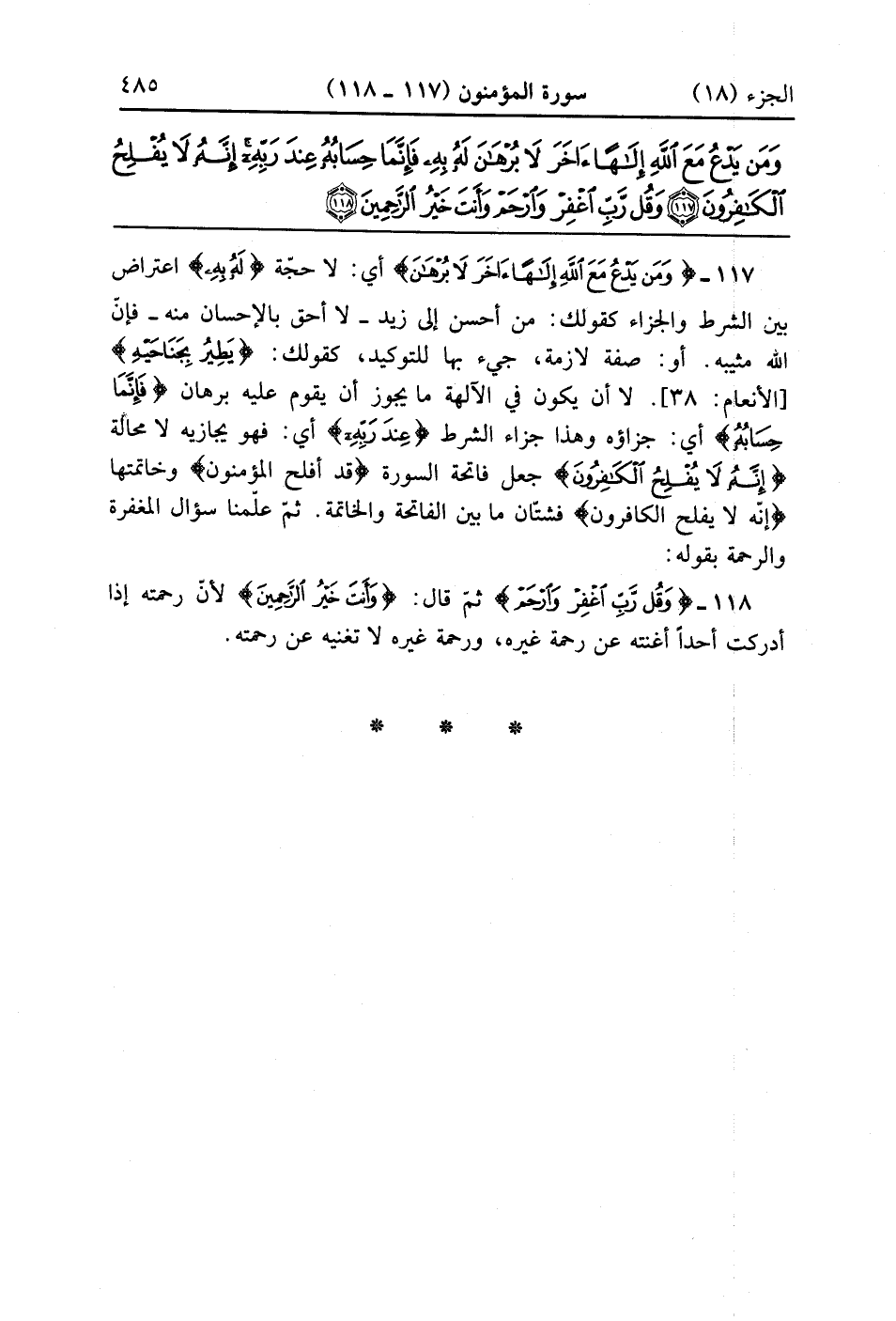 وَمَنْ يَدْعُ مَعَ اللَّهِ إِلَهًا آخَرَ لَا بُرْهَانَ لَهُ بِهِ فَإِنَّمَا حِسَابُهُ عِنْدَ رَبِّهِ إِنَّهُ لَا يُفْلِحُ الْكَافِرُونَ (117)