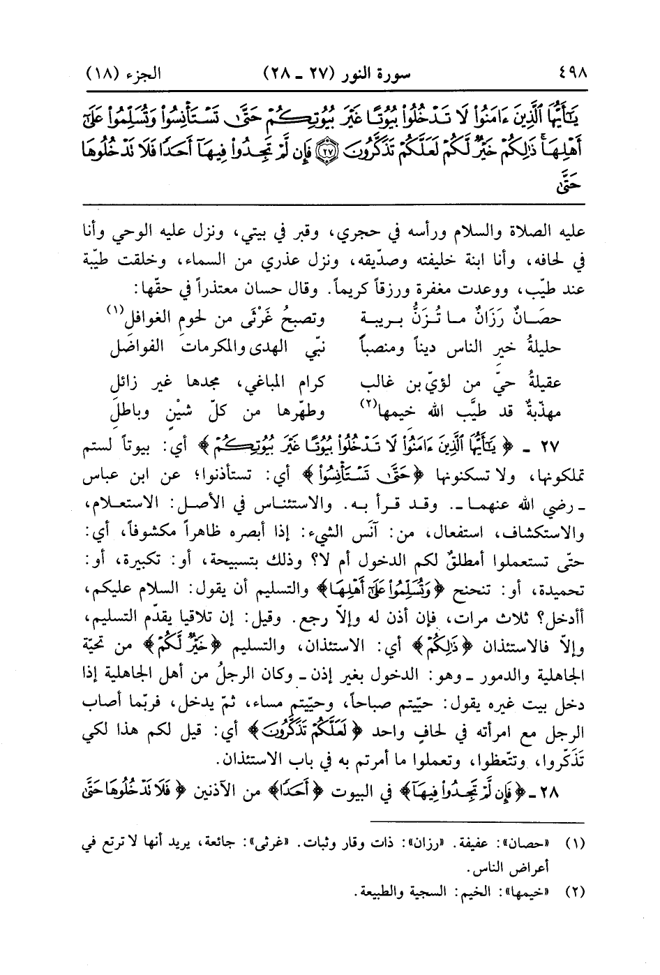 يَا أَيُّهَا الَّذِينَ آمَنُوا لَا تَدْخُلُوا بُيُوتًا غَيْرَ بُيُوتِكُمْ حَتَّى تَسْتَأْنِسُوا وَتُسَلِّمُوا عَلَى أَهْلِهَا ذَلِكُمْ خَيْرٌ لَكُمْ لَعَلَّكُمْ تَذَكَّرُونَ (27)