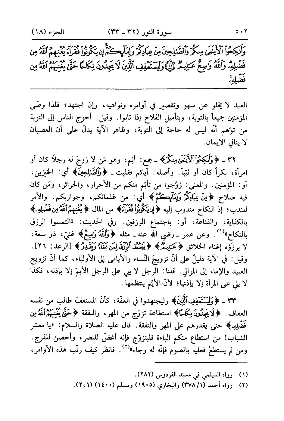 وَأَنْكِحُوا الْأَيَامَى مِنْكُمْ وَالصَّالِحِينَ مِنْ عِبَادِكُمْ وَإِمَائِكُمْ إِنْ يَكُونُوا فُقَرَاءَ يُغْنِهِمُ اللَّهُ مِنْ فَضْلِهِ وَاللَّهُ وَاسِعٌ عَلِيمٌ (32)