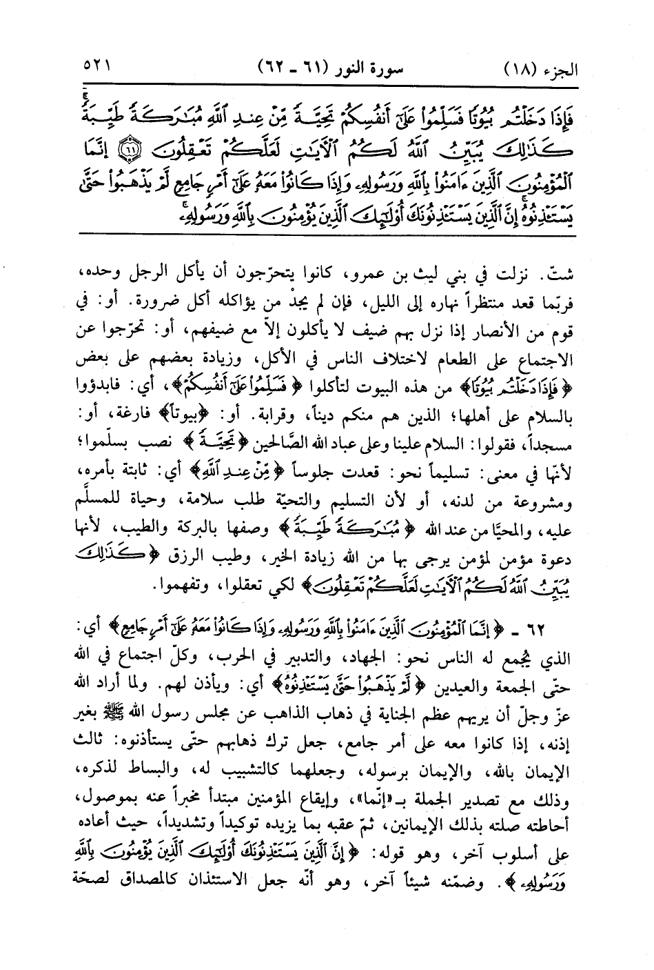 إِنَّمَا الْمُؤْمِنُونَ الَّذِينَ آمَنُوا بِاللَّهِ وَرَسُولِهِ وَإِذَا كَانُوا مَعَهُ عَلَى أَمْرٍ جَامِعٍ لَمْ يَذْهَبُوا حَتَّى يَسْتَأْذِنُوهُ إِنَّ الَّذِينَ يَسْتَأْذِنُونَكَ أُولَئِكَ الَّذِينَ يُؤْمِنُونَ بِاللَّهِ وَرَسُولِهِ فَإِذَا اسْتَأْذَنُوكَ لِبَعْضِ شَأْنِهِمْ فَأْذَنْ لِمَنْ شِئْتَ مِنْهُمْ وَاسْتَغْفِرْ لَهُمُ اللَّهَ إِنَّ اللَّهَ غَفُورٌ رَحِيمٌ (62)
