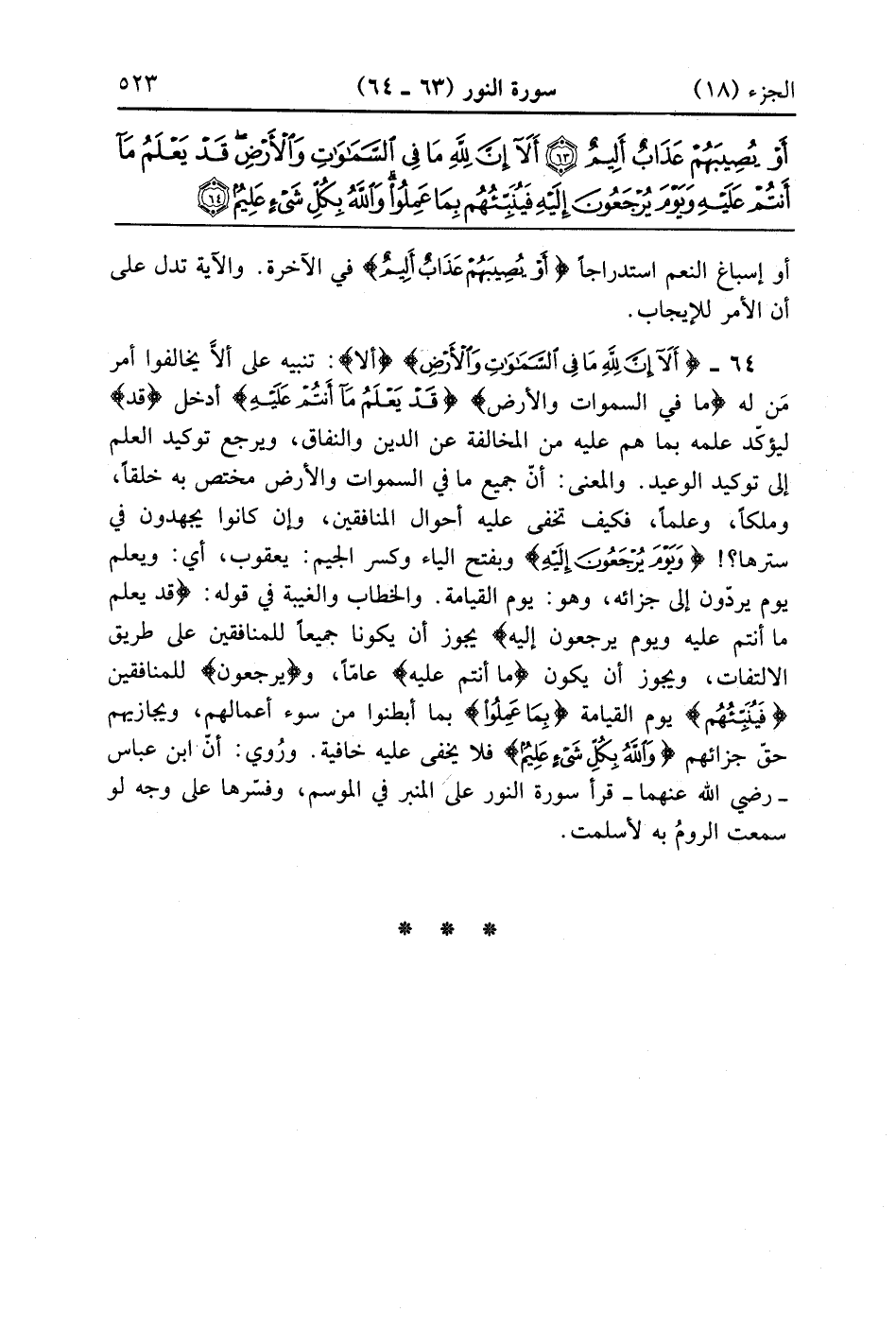 أَلَا إِنَّ لِلَّهِ مَا فِي السَّمَاوَاتِ وَالْأَرْضِ قَدْ يَعْلَمُ مَا أَنْتُمْ عَلَيْهِ وَيَوْمَ يُرْجَعُونَ إِلَيْهِ فَيُنَبِّئُهُمْ بِمَا عَمِلُوا وَاللَّهُ بِكُلِّ شَيْءٍ عَلِيمٌ (64)