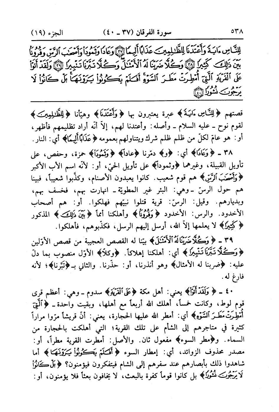 وَعَادًا وَثَمُودَ وَأَصْحَابَ الرَّسِّ وَقُرُونًا بَيْنَ ذَلِكَ كَثِيرًا (38)